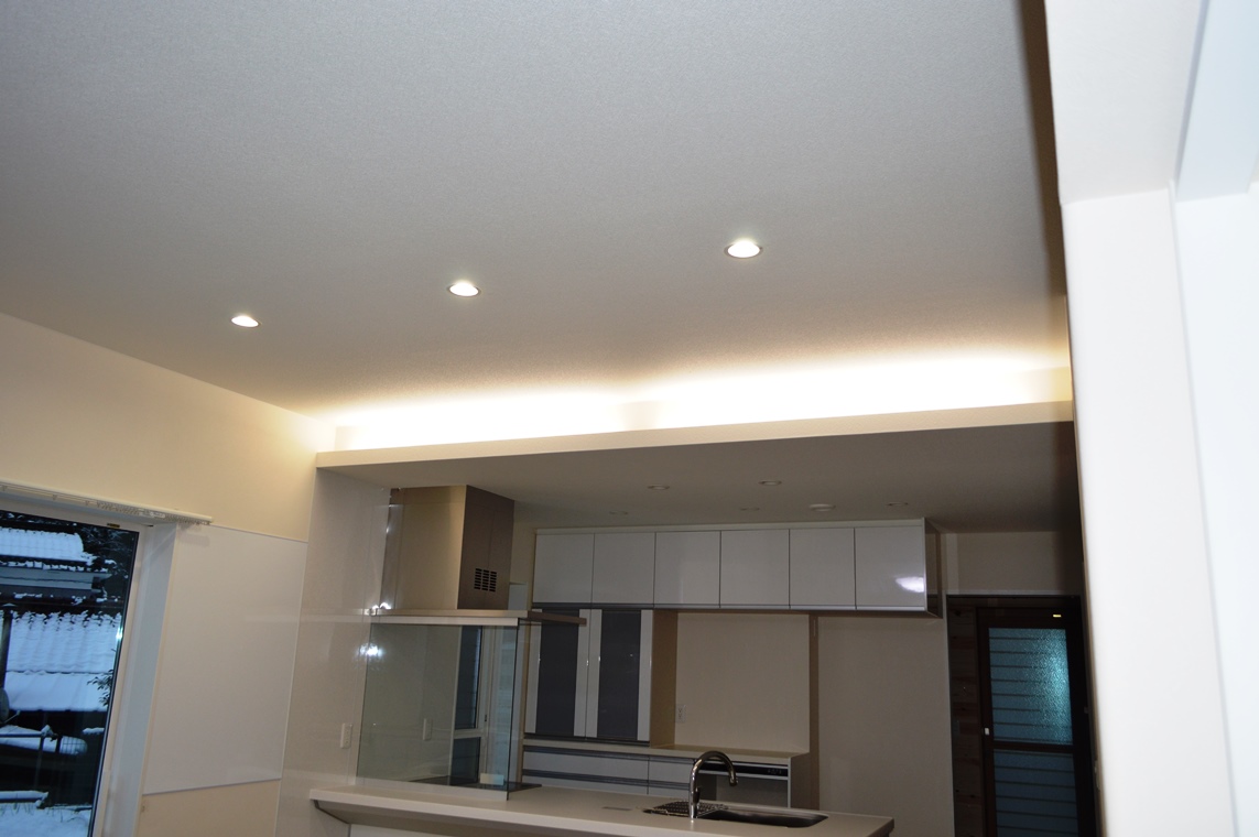ダイニング側の天井面には意匠的なライン照明を施工しました。