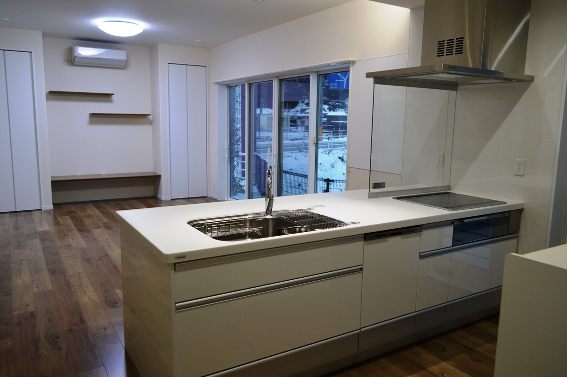 内装・建具・サッシ・システムキッチンも白を基調に選んでいきました。