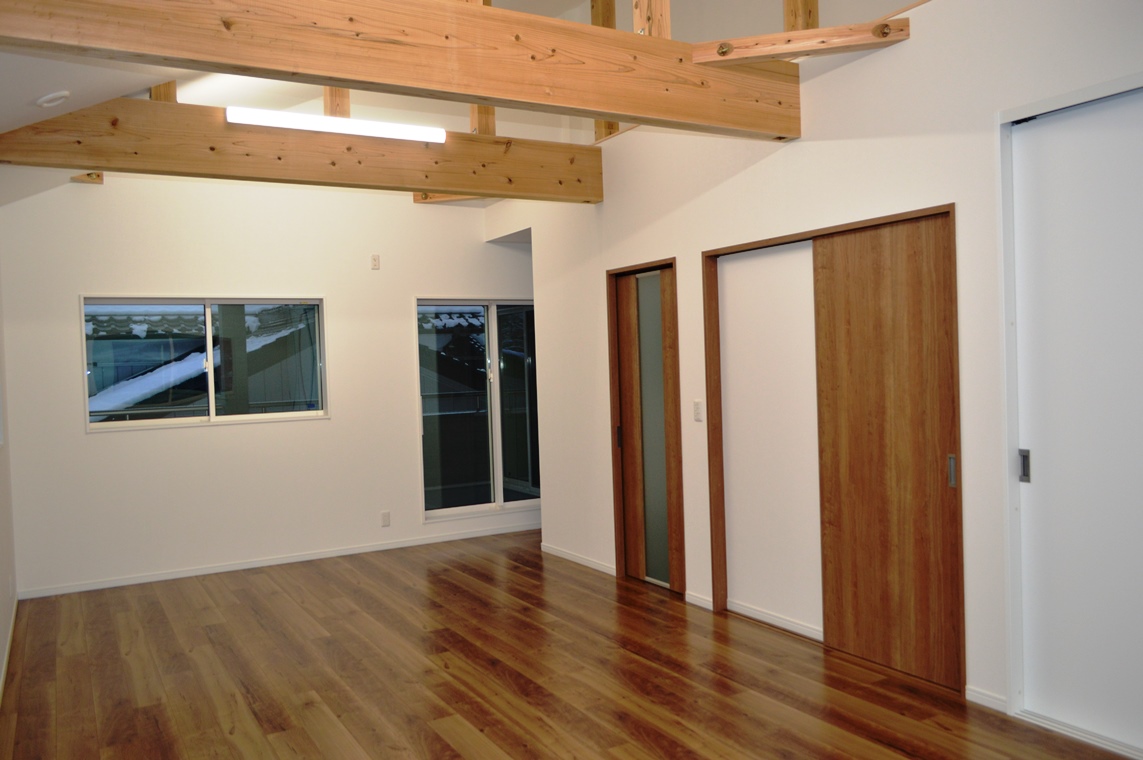 2階のフリースペースはのお部屋は、先で仕切りが出来るように電気の位置