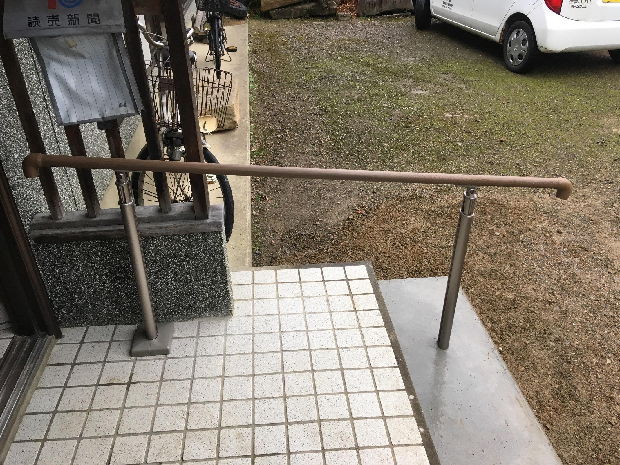 介護保険適用工事。玄関前のポーチに1段増やし、上がりやすいように手すりを取り付けました。