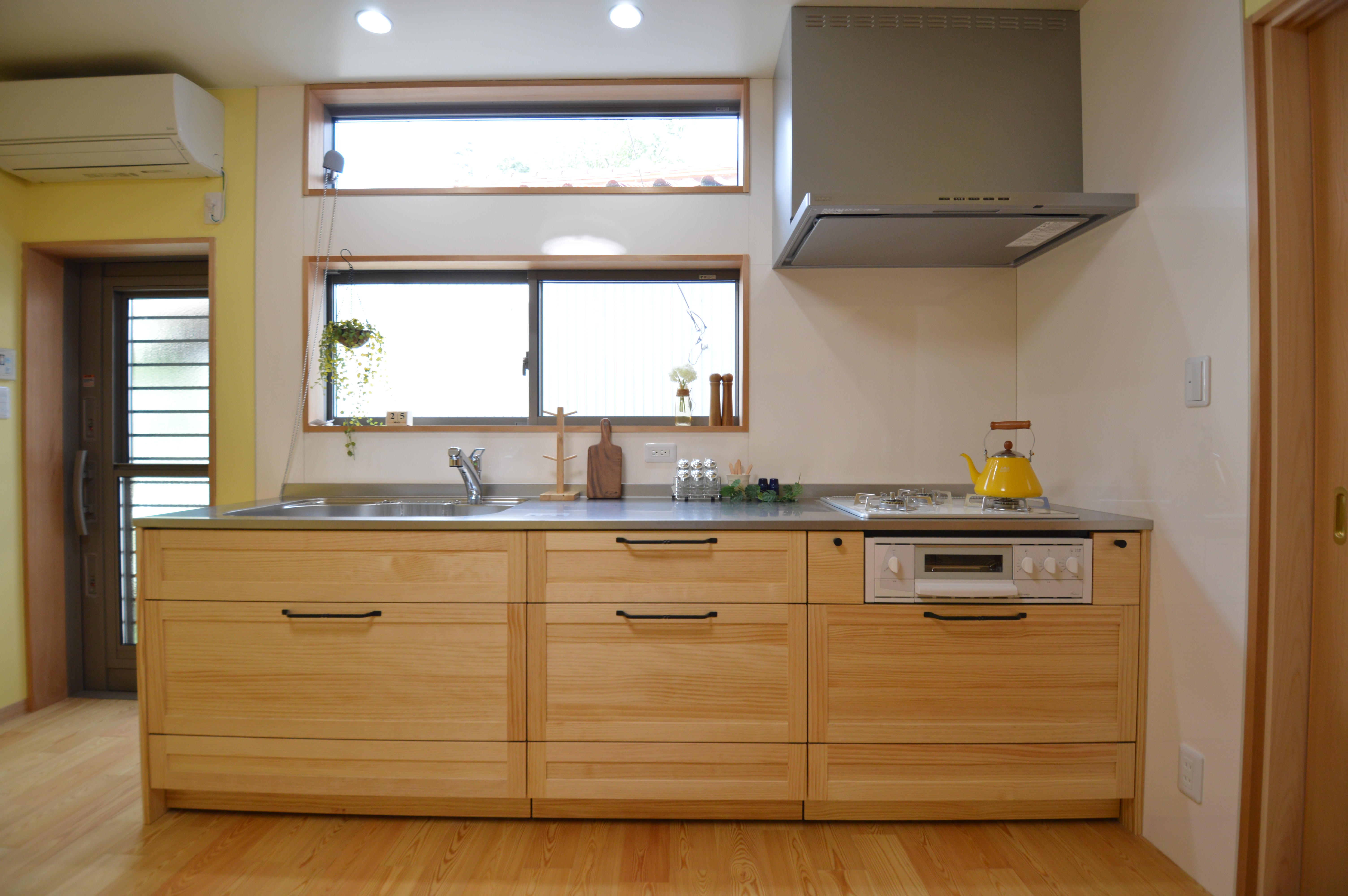 キッチンのリフォーム工事をさせて頂きました。 暗いキッチンだったので、窓を高い位置に施工して、明るいくなるようにしていきました。 システムキッチンは無垢のキッチンを施工。 周りの壁は、全てお施主様が自らペイントして仕上げていきました。 とてもかわいらしいキッチンに仕上がりました。