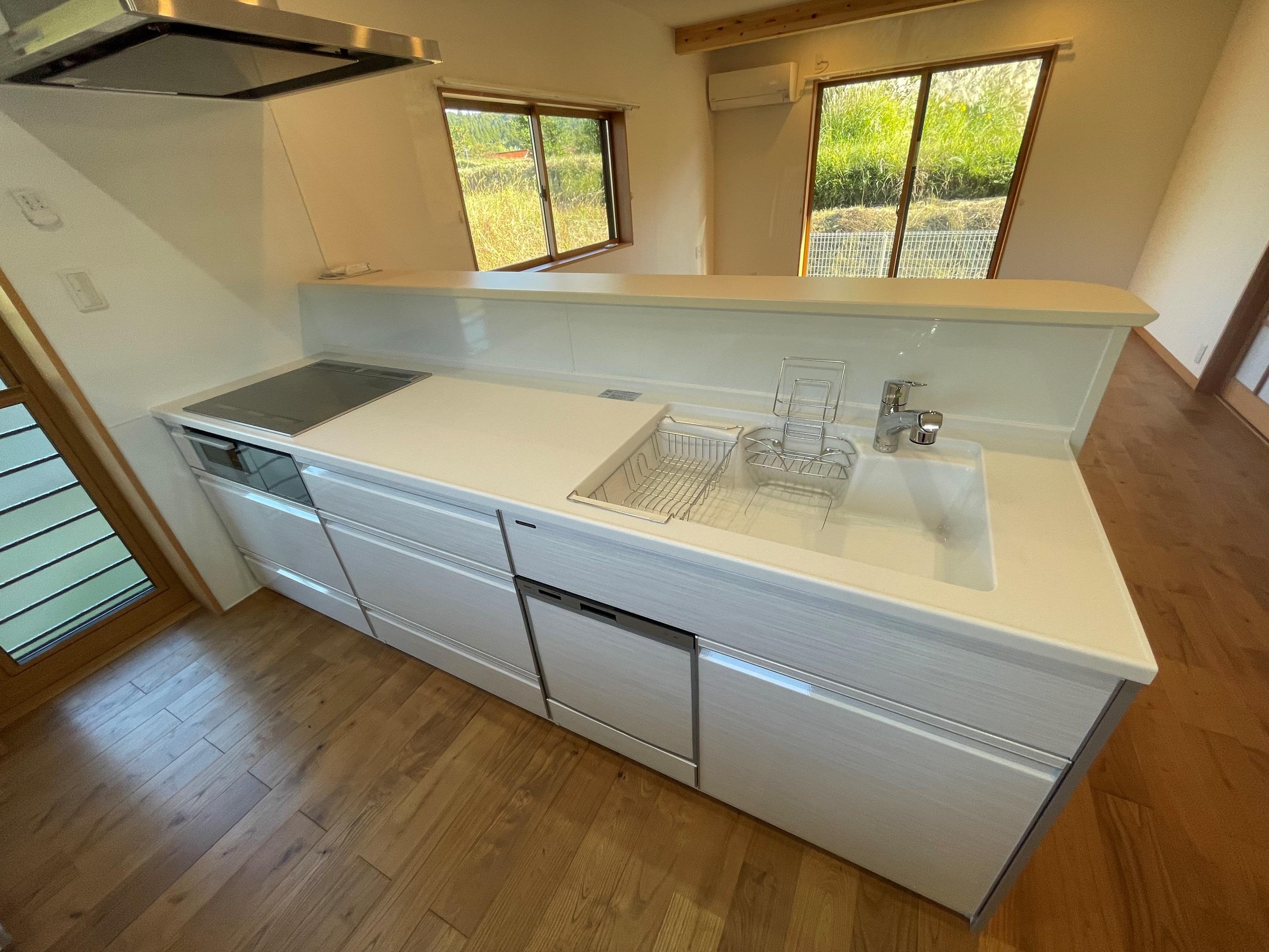 LDKの改修工事をさせて頂きました。 間仕切り壁をなくして、1つのLDKとして広げていきました。 システムキッチンも今回の工事で、対面式にして使い勝手の良い、 LDKが完成しました。