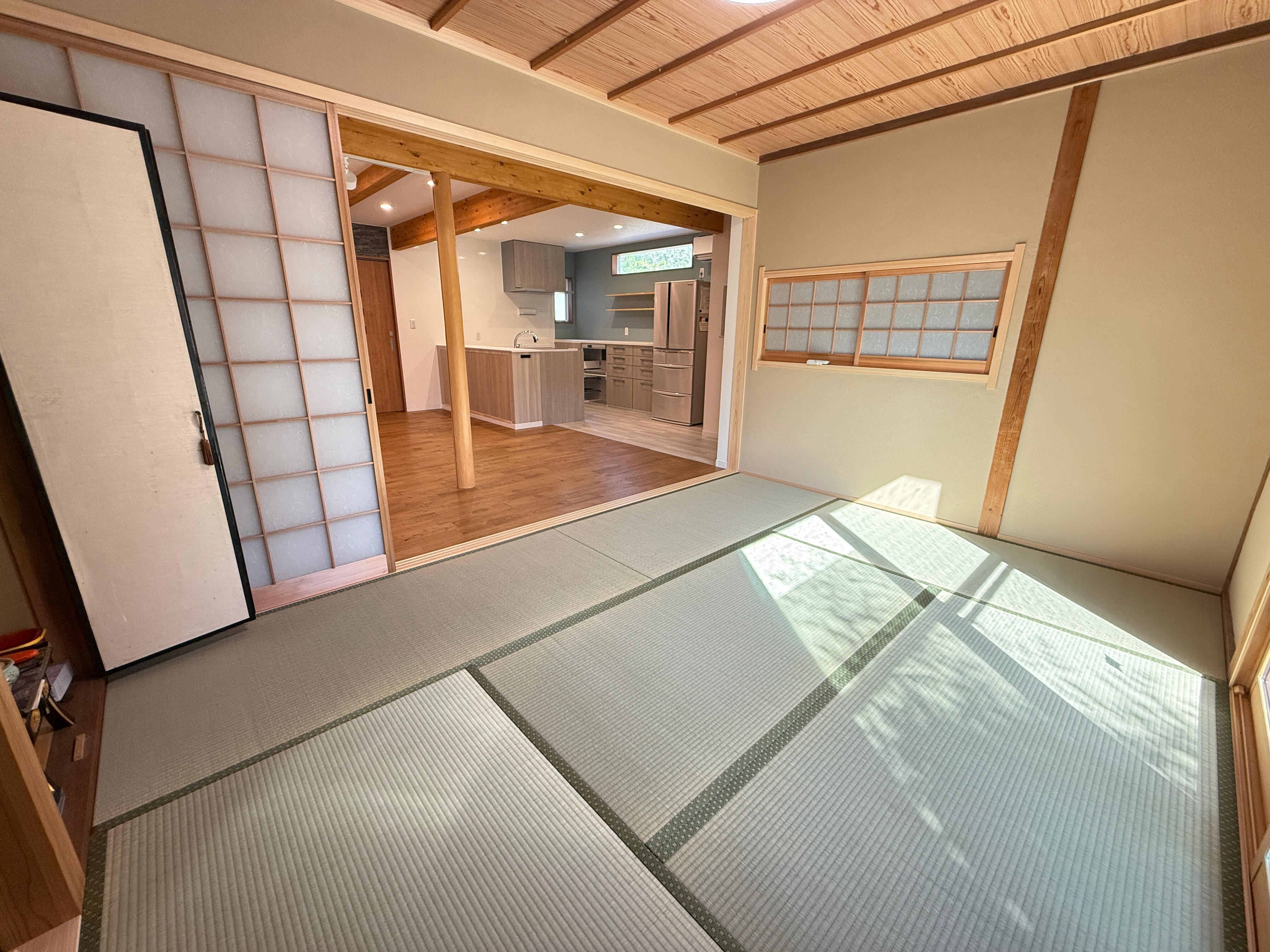 お父様1人暮らしのお家を、息子さんご夫婦がリノベーションをして、一緒に住めるように改修工事をしていきました(^ー^)今回の工事で、水廻りは全て改修工事をし、お風呂・脱衣室は増築部分に建築工事していきました。
