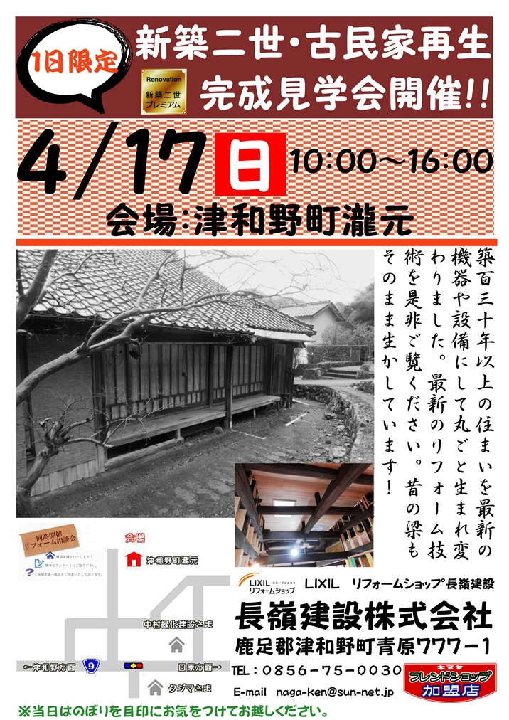 只今、進行中のリフォーム物件の完成見学会を開催いたします!!