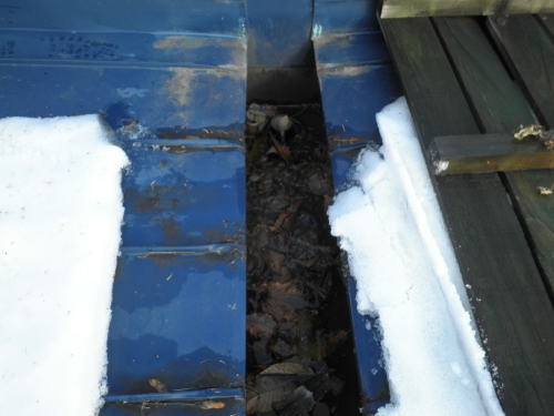 ここがゴミや落ち葉で詰まると、雨水や雪解け水が逃げ場がなくなり、雨漏りになったりします━(-д-;)━エェェェェ!?!