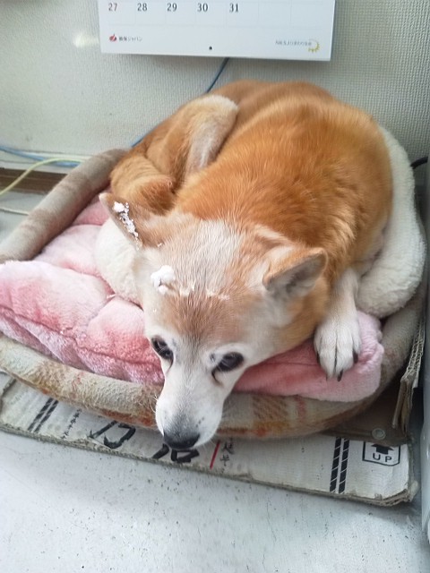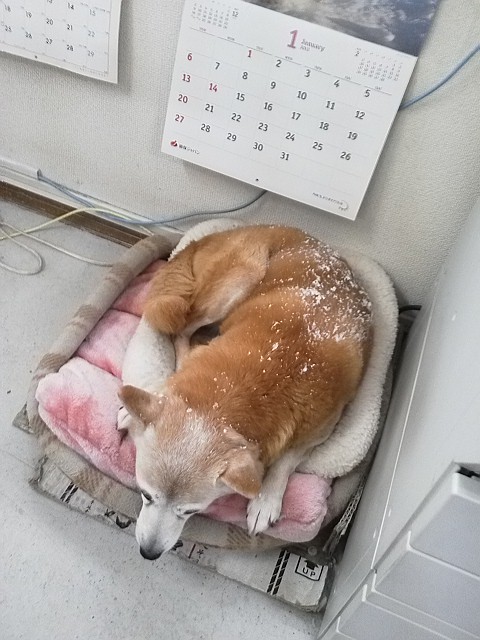 雪遊びして、満足げに自分の寝床に戻ってきたラブちゃんです(*^_^*)カワイ♡