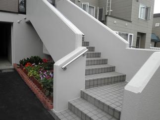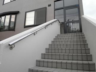 外階段の手摺をこだわって、付けました! うちの中の手摺も頑丈で 高さもきちんと合っていて 使い勝手がすごく良い! 外壁、階段塀の塗り替えも 良かったです。全体的に 満足です!