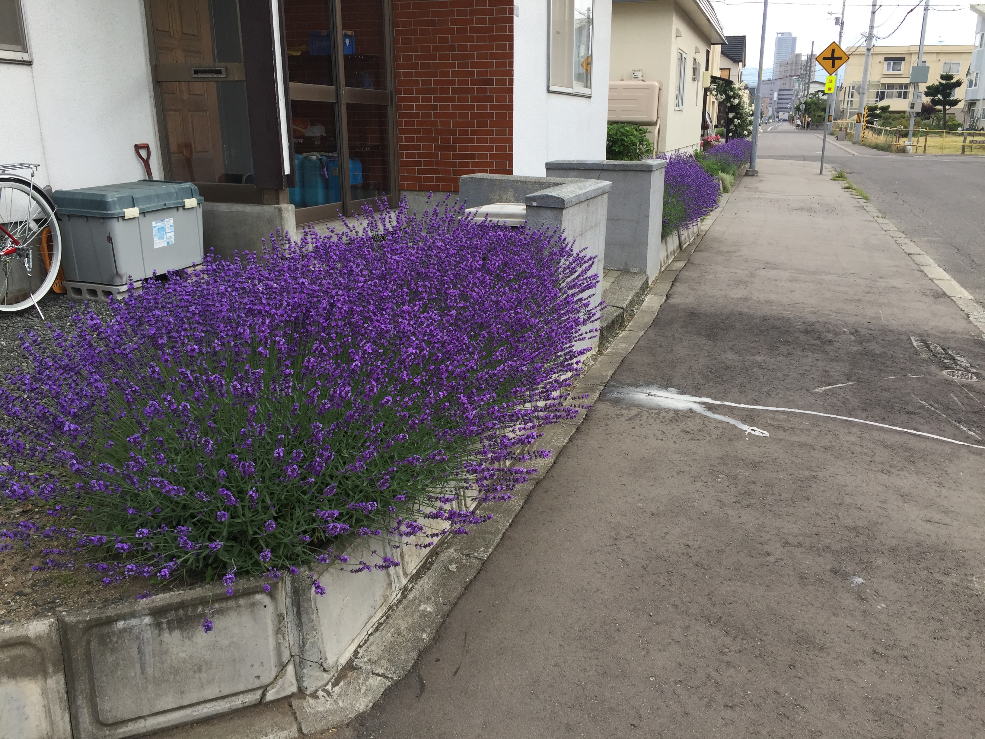 毎月八軒エリア「やまもく通信」をお配りしているのですが、今月分の配布中に何件ものお宅でラベンダーがきれいに咲いておりました。歩いてクタクタな時も癒されてほっと一息。「よし!あとちょっとだ!」と気合が入ります。