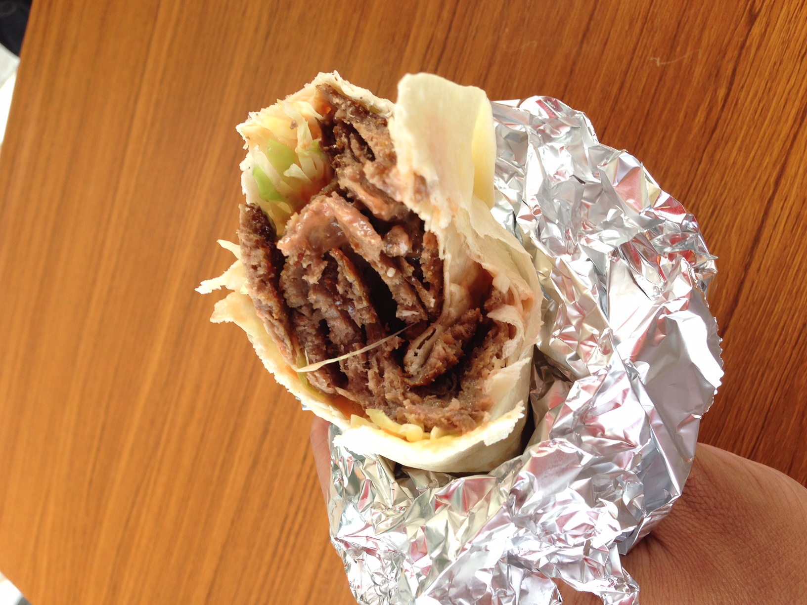 ビーフとチキンのケバブです。中身が見えるように少し食べてから写しました。