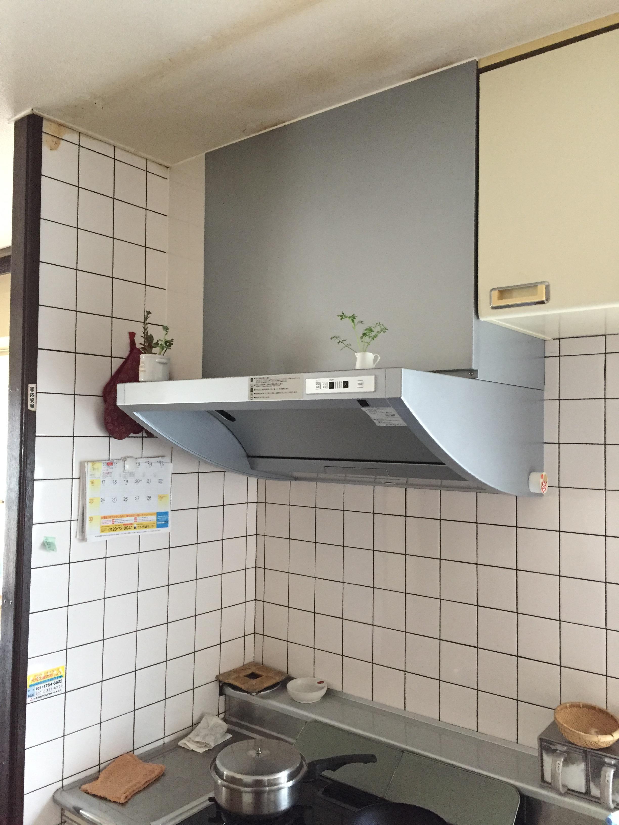 交換前のレンジフードの幅が600mmなのに対し交換後は750mmの変更になりましたので、