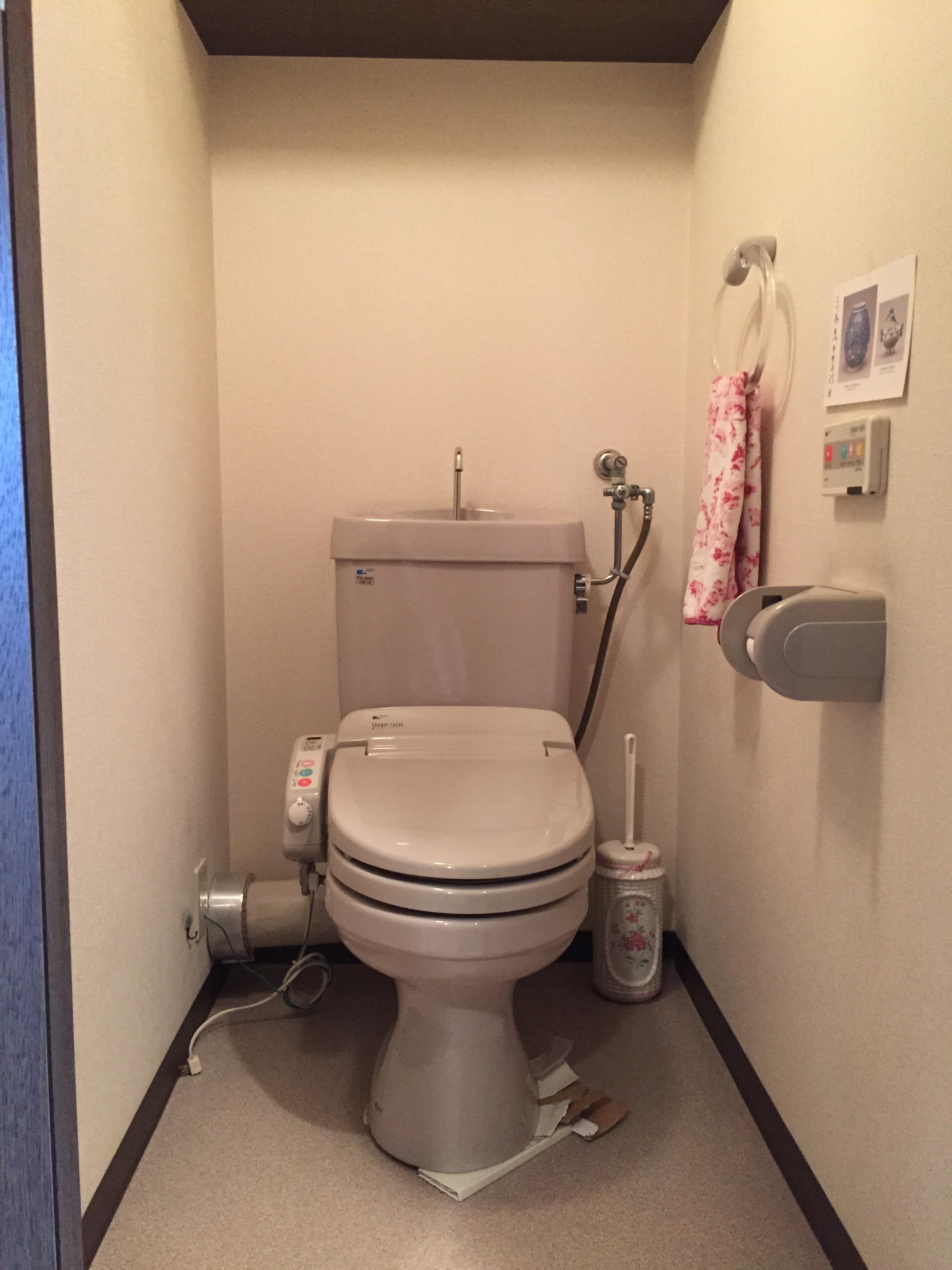 また便器の傾きは便器を設置する前に樹脂製のパッキンを挟んで水平にしました。その後は白のコーキングでパッキンを挟んだままコーキング処理してあります。便器が傾いていないので気持ちよくお使いいただいております。
