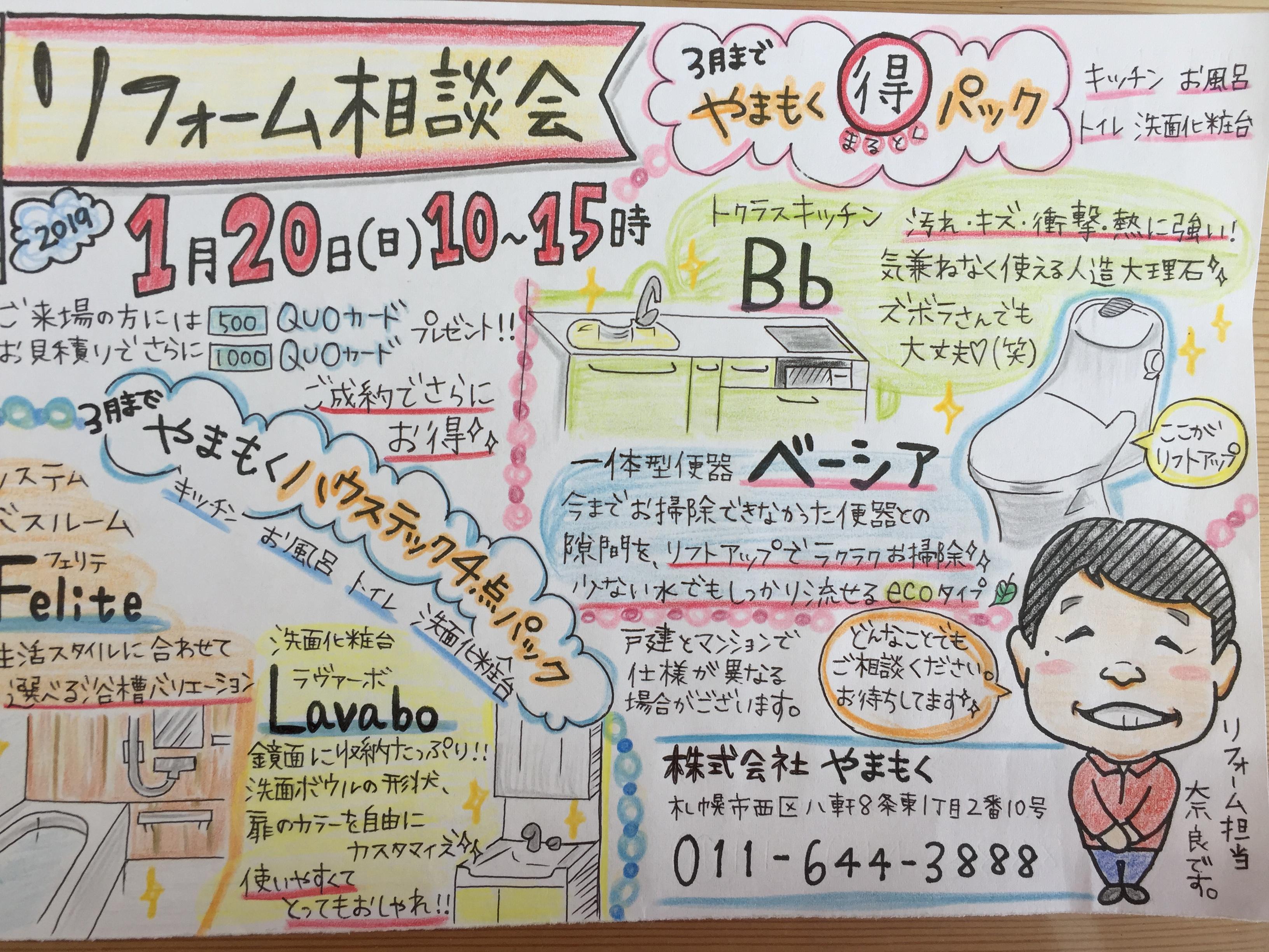来年1月20日(日)10時~15時まで やまもく1階イベントスペース tanosie(たのしえ)でリフォーム相談会を開催します。メインはお得な水まわり4点パック
