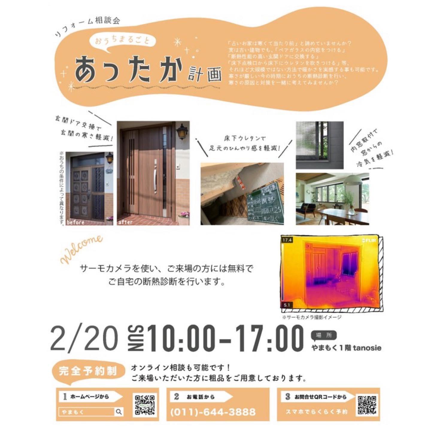 今回はリフォーム相談会のおしらせです♪ 今週末にやまもく一階にて「おうちまるごとあったか計画」相談会を開催いたします(^^)