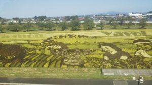 これは、何と!稲で作られた田んぼアートなのだそうです\(^^)/
