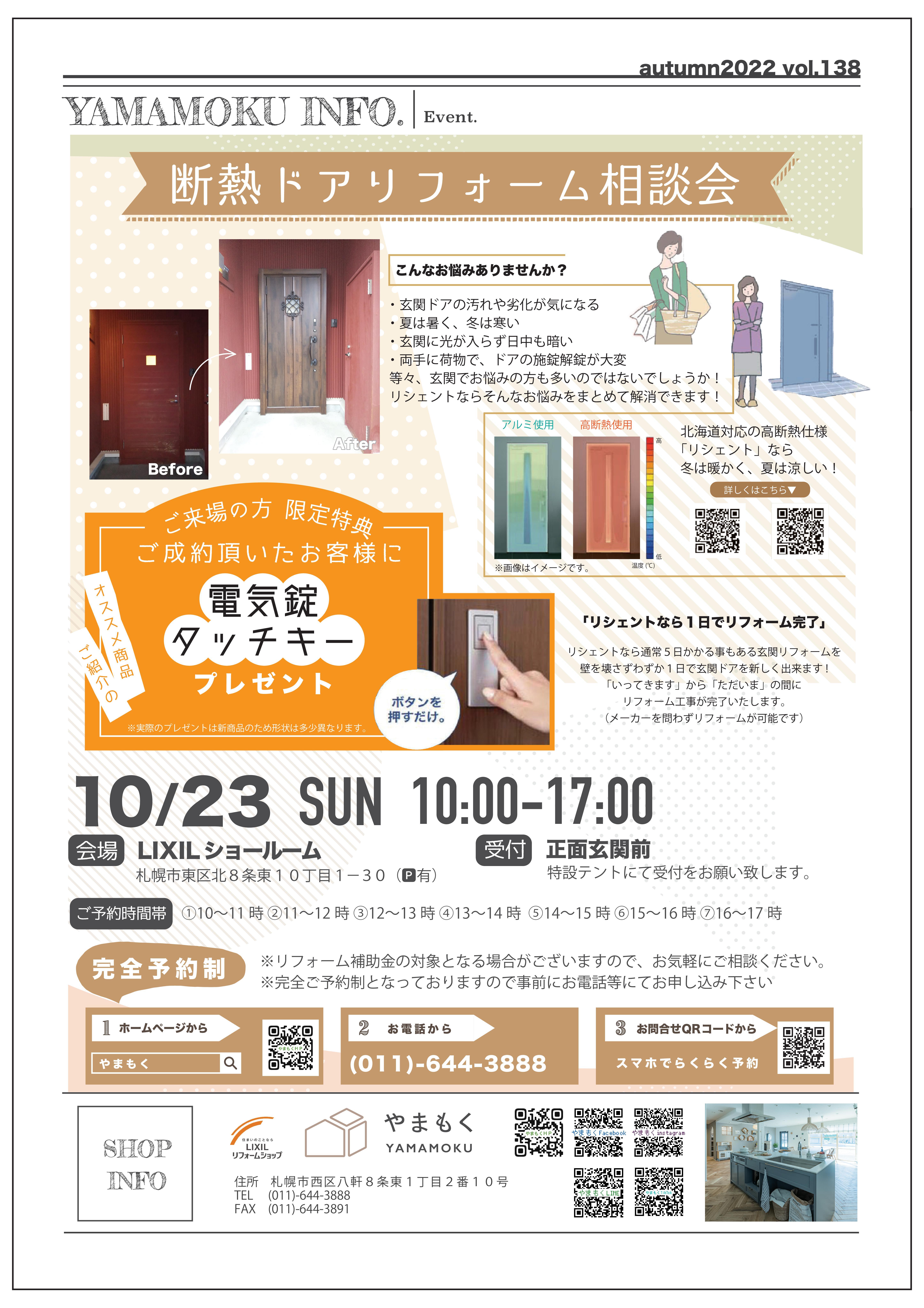 そして、4ページ目は、10/23(日) 10:00-17:00開催の『断熱リフォームドア相談会』のお知らせです!