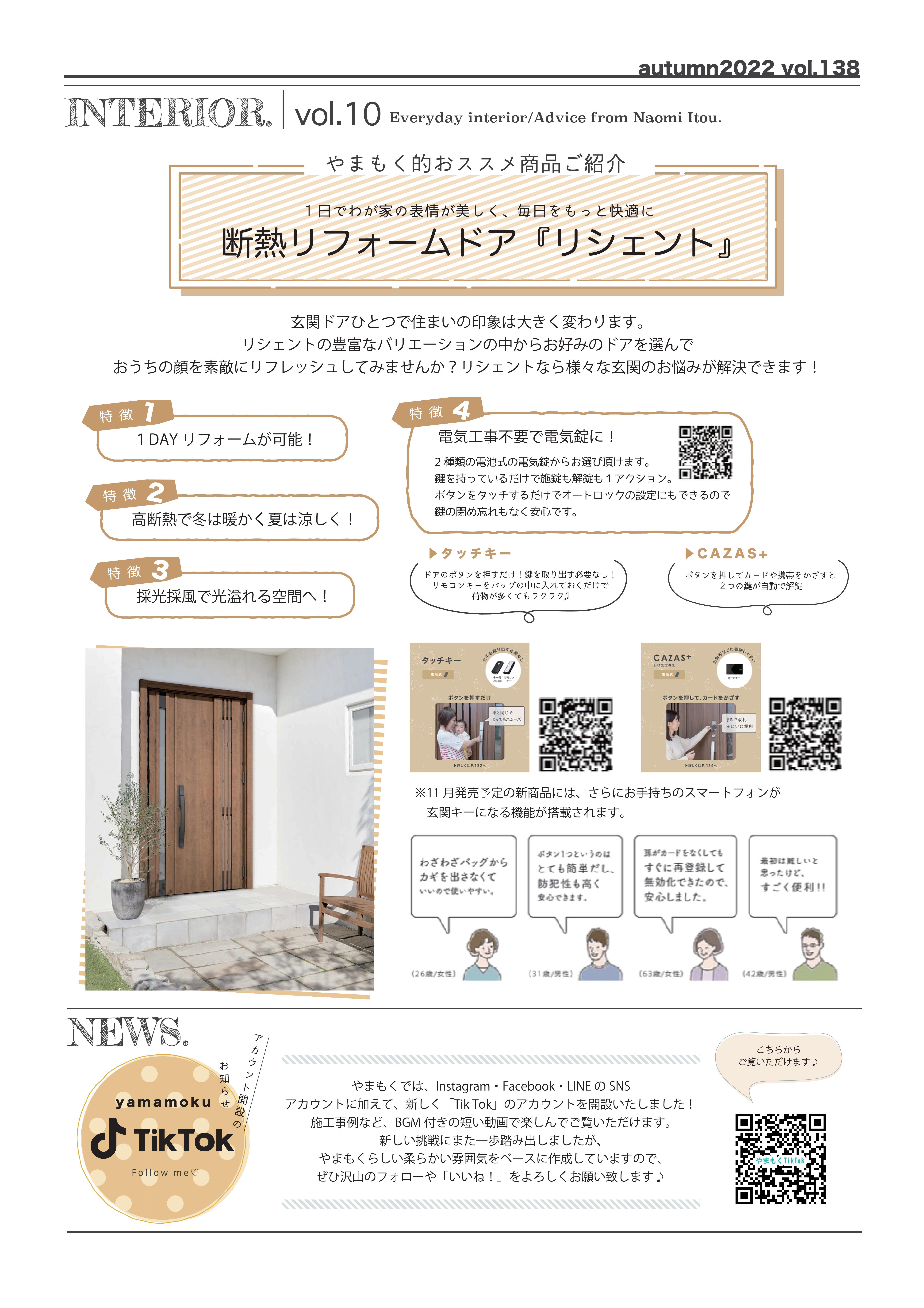 また、やまもくTIKTOKアカウント開設のお知らせも掲載♪