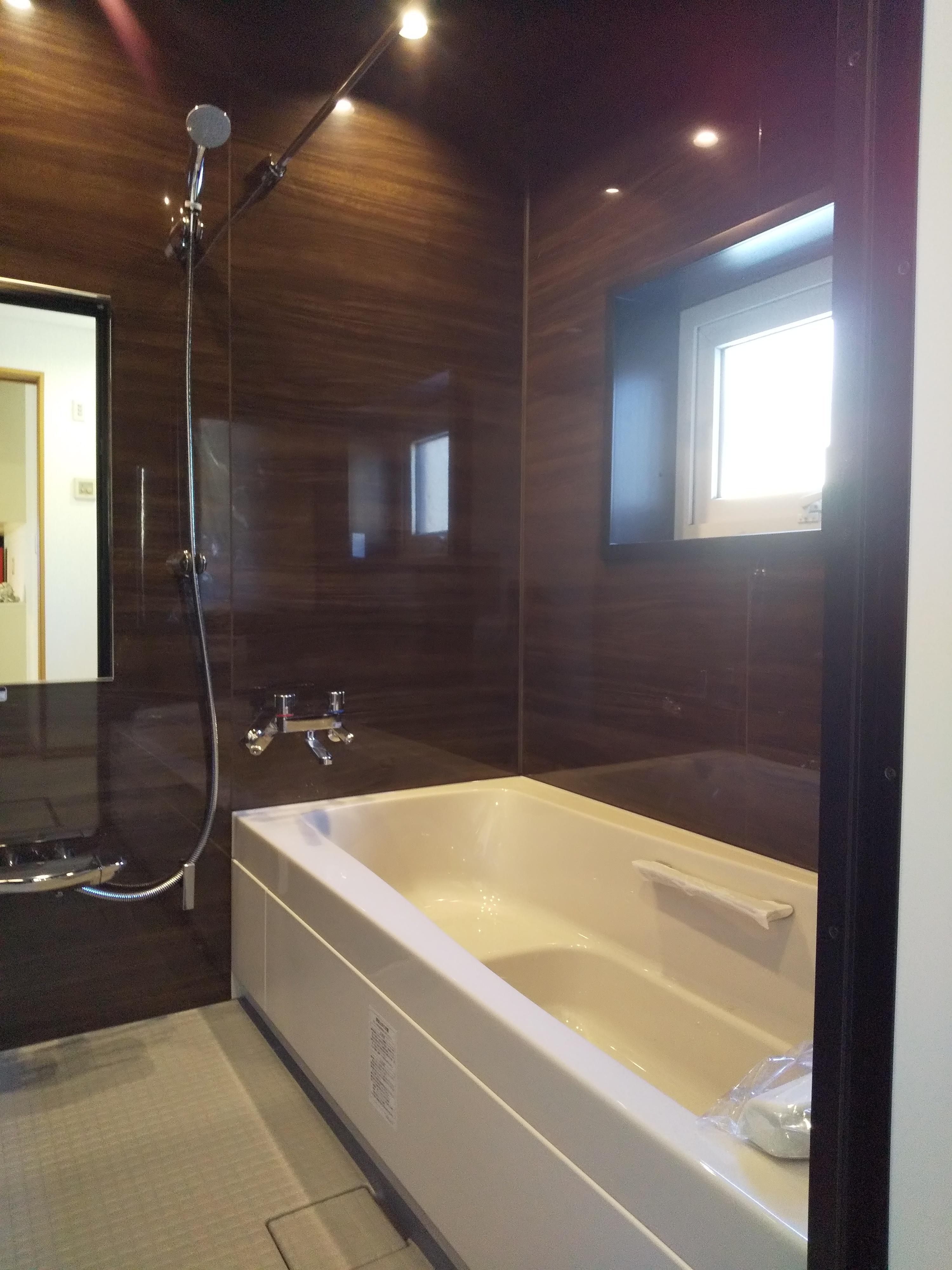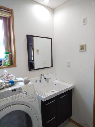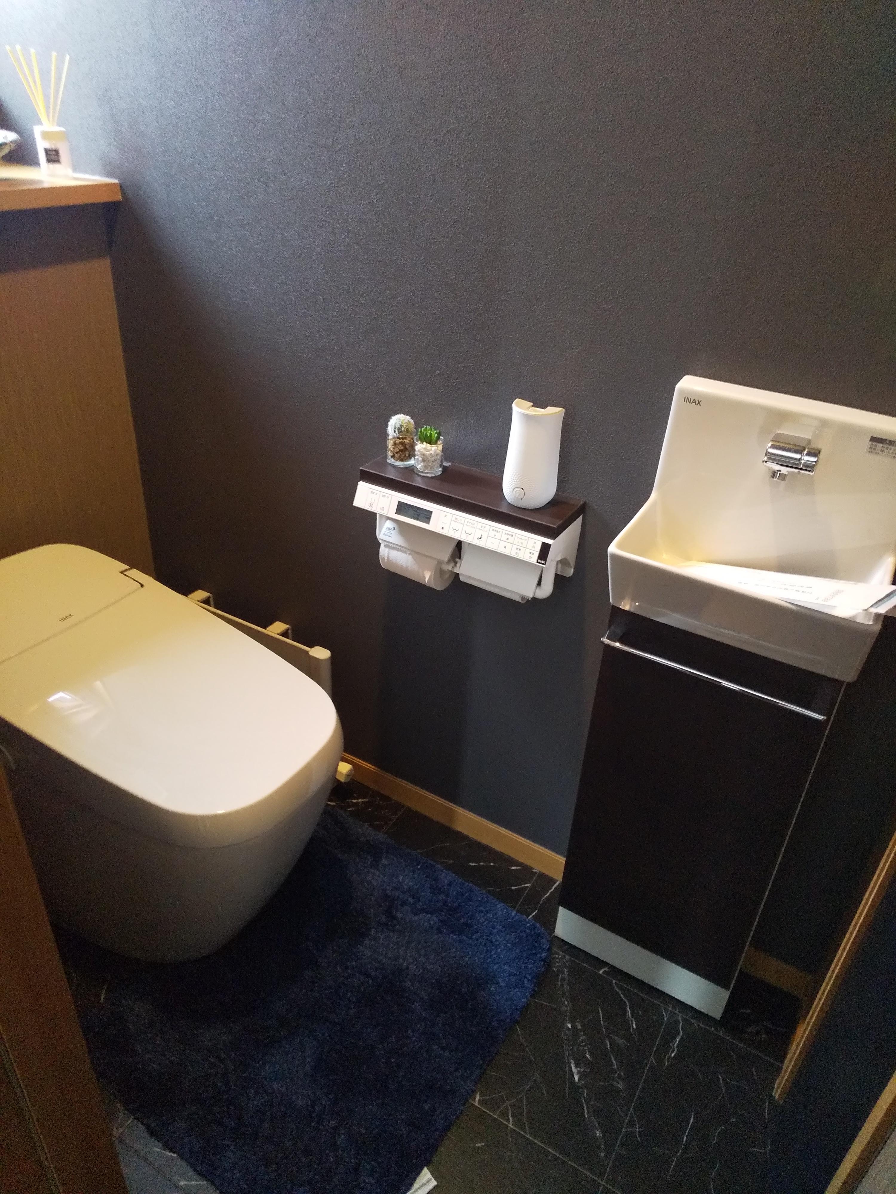 水廻りもシックな配色で一新し、インテリアに統一感を持たせました。