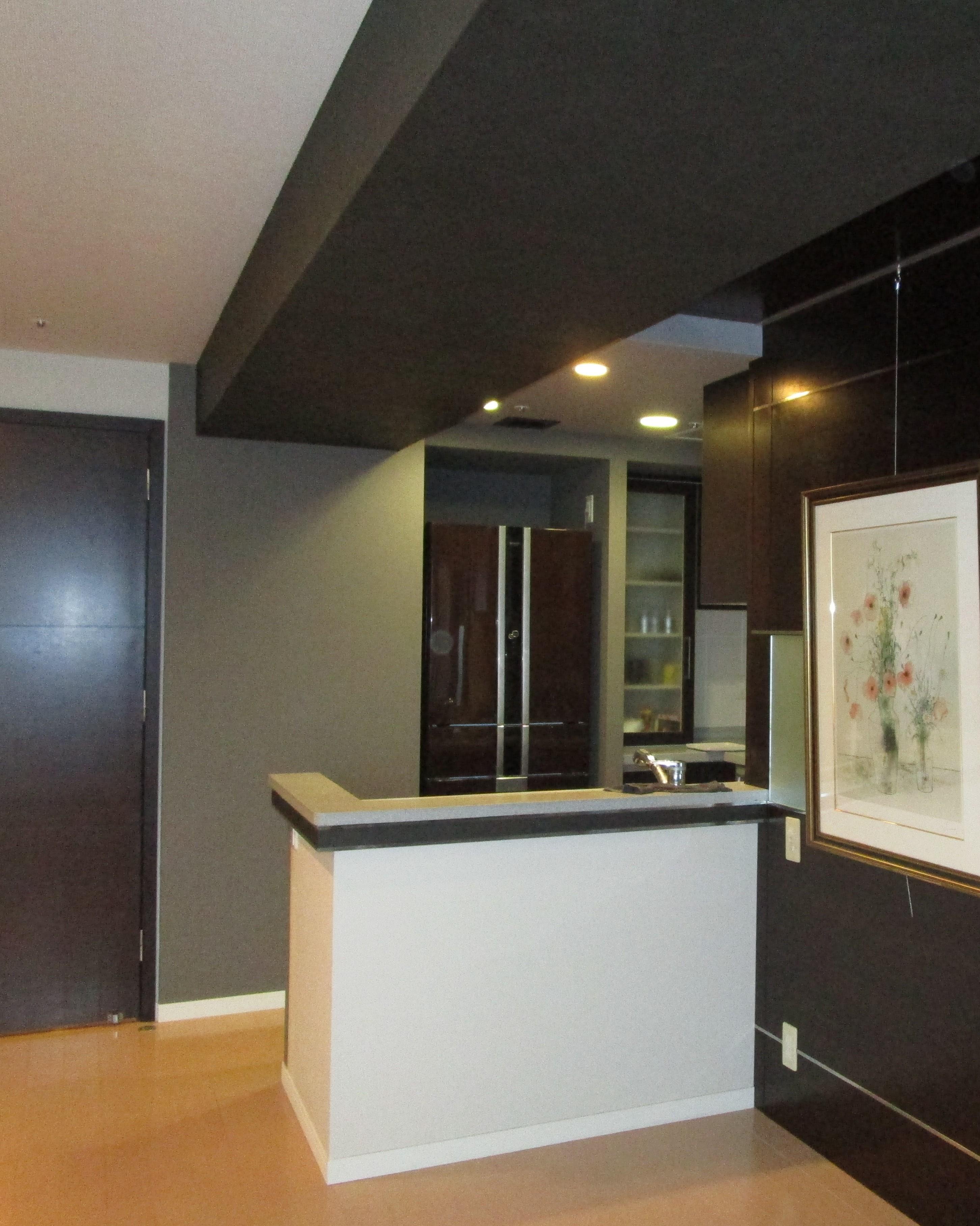 センスの良いお施主様のキッチンを 間接照明でエコカラットを照らすことで 美しい陰影を作り、ラグジュアリーな雰囲気にしました。
