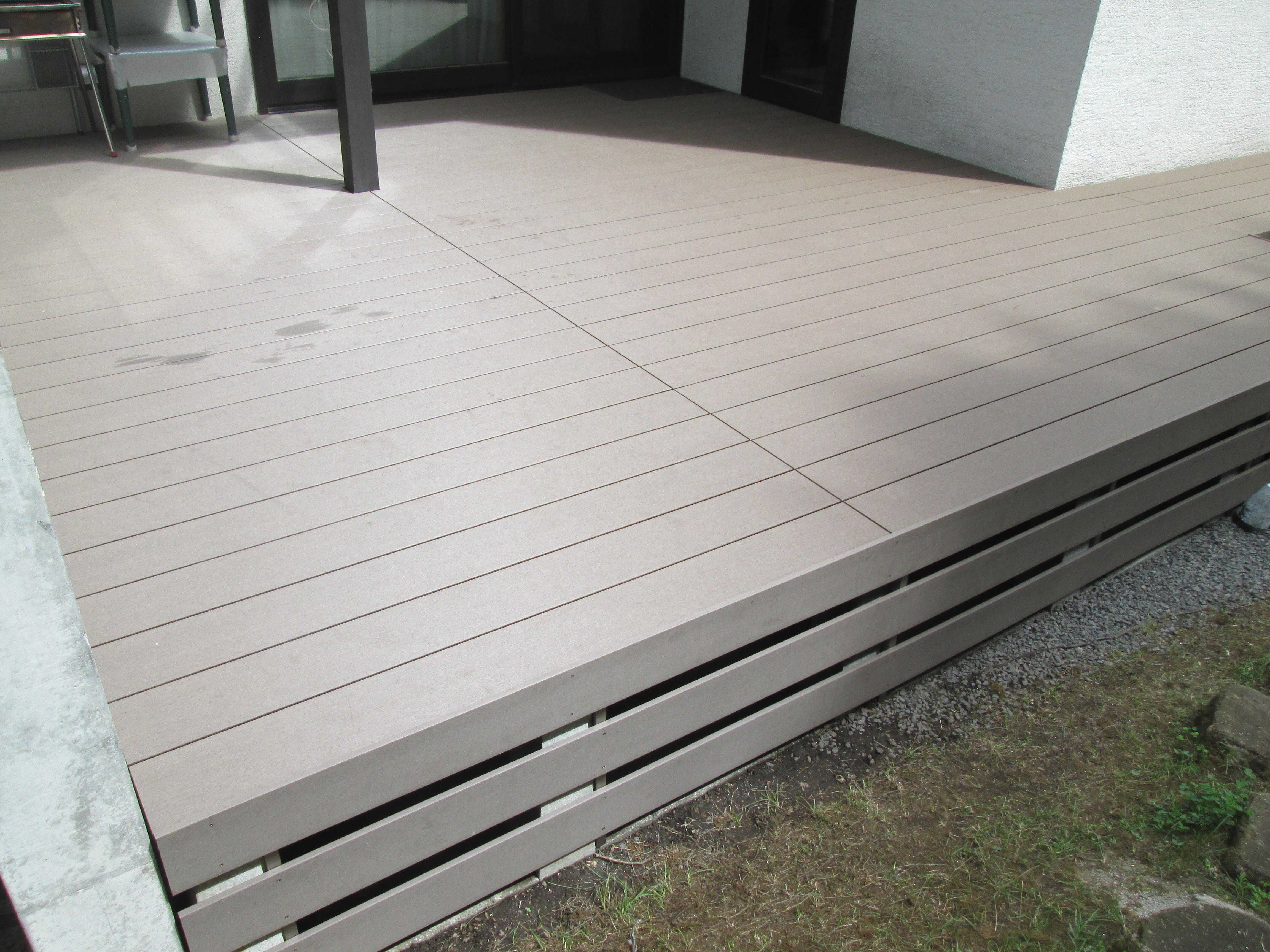 天然木デッキよりも頑丈でメンテナンスがラクなのが人工木ウッドデッキ 腐食やシロアリの心配もなく、すべりにくく干割れやささくれが出にくい加工が施されているため、子どもやペットがいる家庭にもおすすめです。安心して活用していただけます!