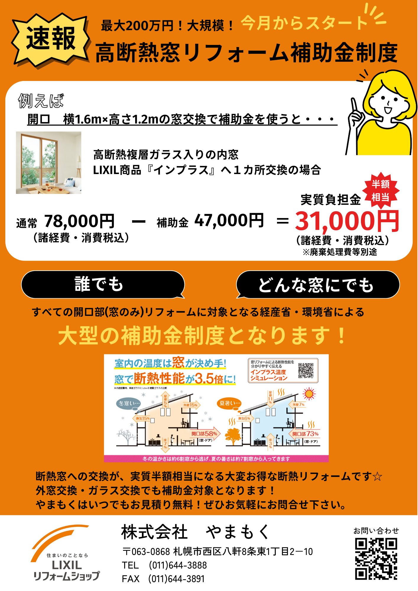 など、お困りの方は実質負担約半分で窓リフォームができてしまう、大チャンスです!