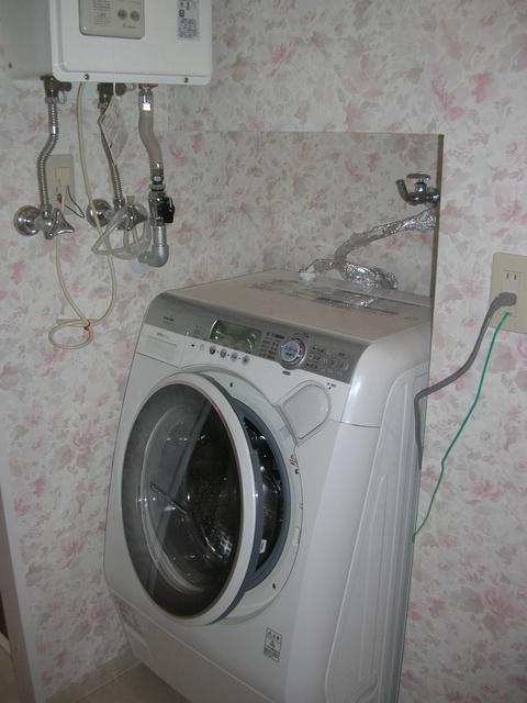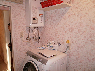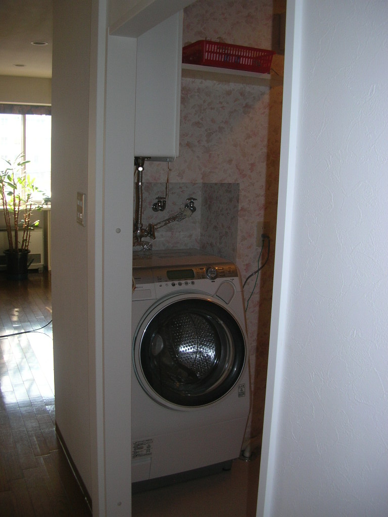 介護保険を使用した工事です。車椅子が少しでも動きやすくなるように、洗面所スペースを広げます。その為壁を動かし洗濯機を奥に移動する工事。