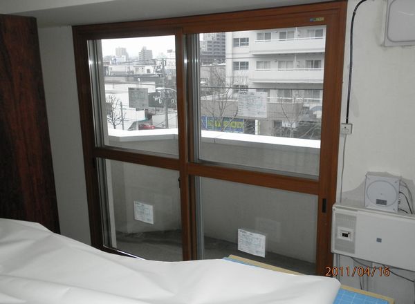 施工前窓枠が木製でしたので、色も合わせて樹脂色を茶色で。なので写真では分かりづらいですかね? これで、暖かくなるでしょう!もちろんエコポイント適用工事です。