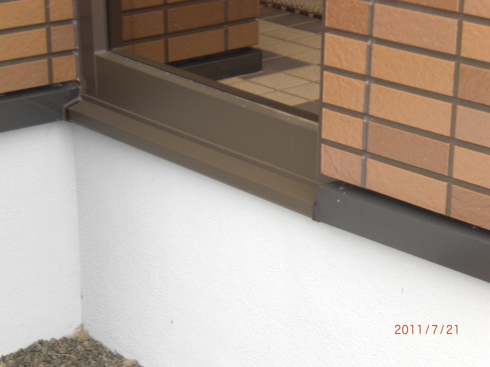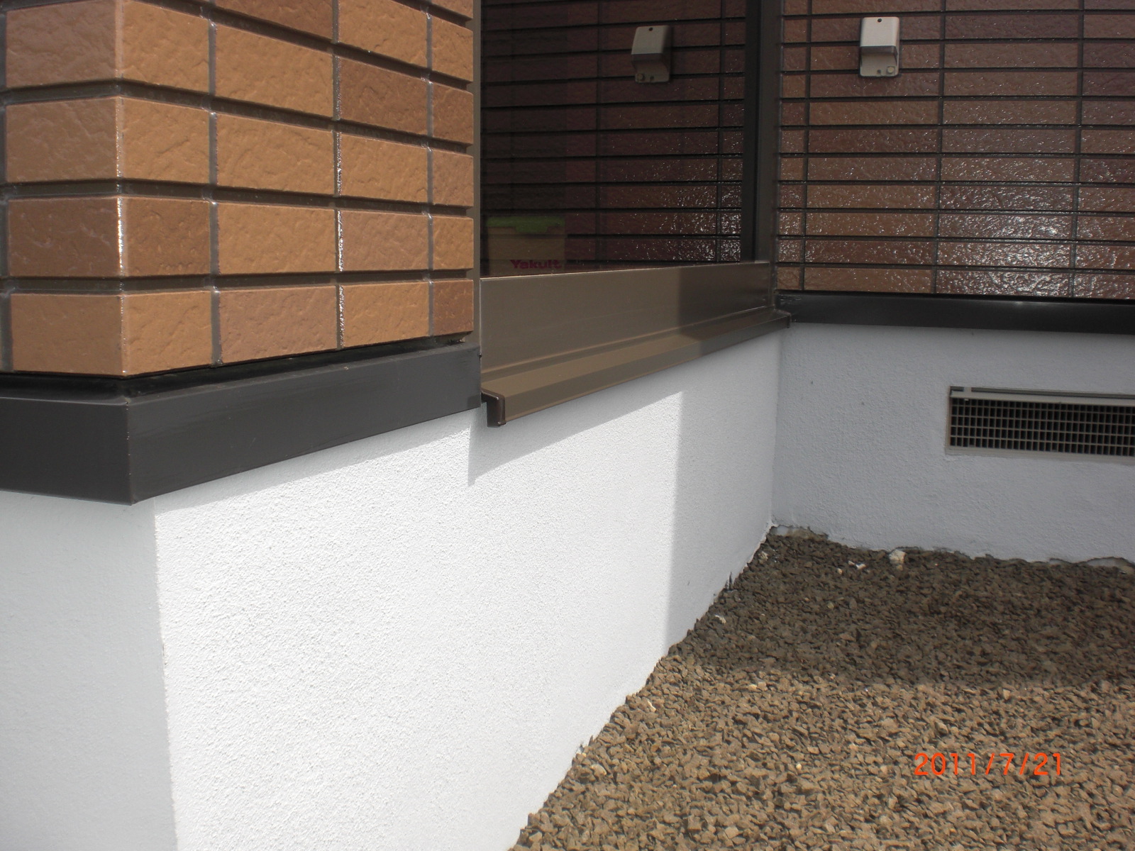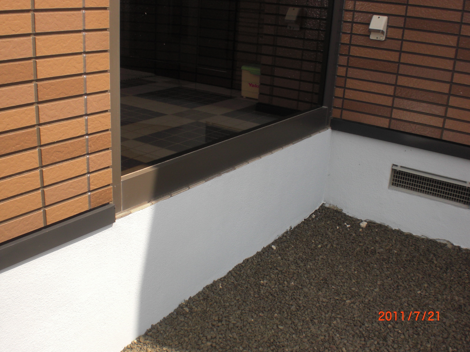 玄関風除室に基礎が汚れないように水切りを付けました。こんなことも可能なのです。これで、基礎も汚れませんね。