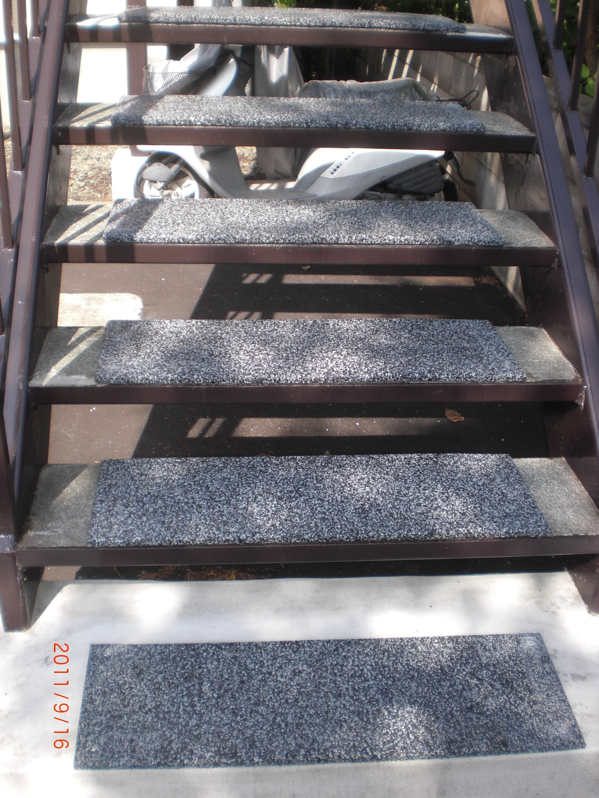 階段マット!北海道の冬!外階段にも雪が降り積もります。氷点下の日、凍結も心配ですよね。このマットどうでしょうか?