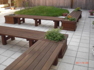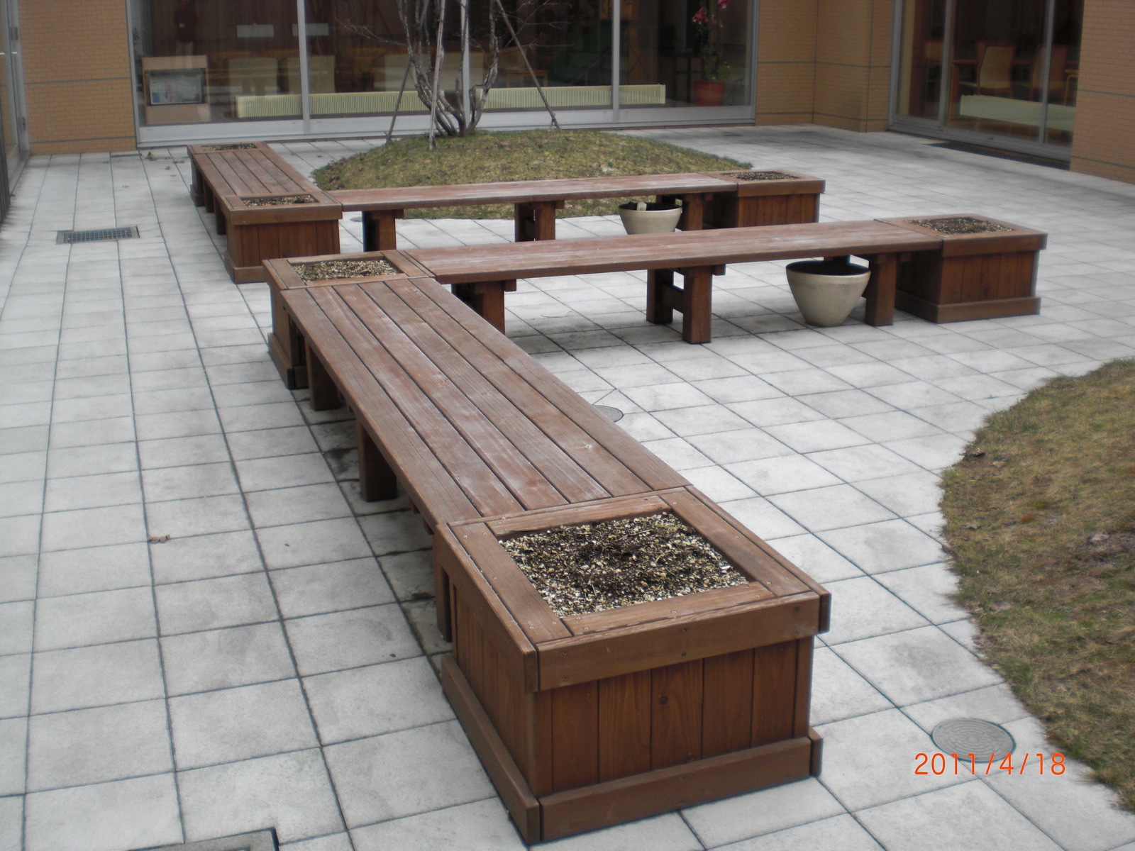 木製ベンチ。。。地元の病院施設のベンチです。塗装をお願いされました。夏は集える場所。