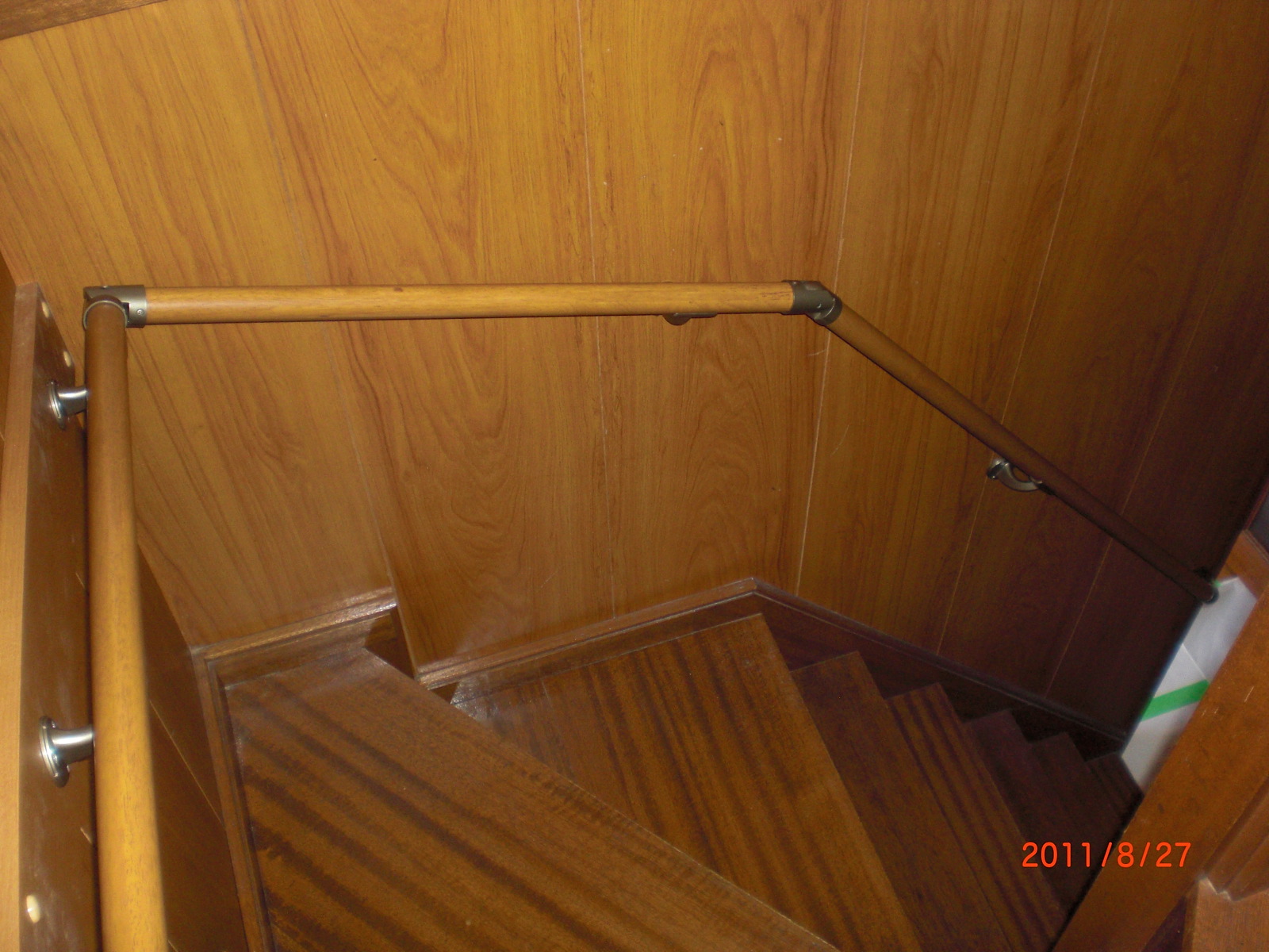階段手摺です。安全対策はもちろん!楽に昇り降りをする為の手摺。必要ですね。既存の階段、壁の色に合わせて、同じような手摺を施工しました。違和感も無く!これで安心ですね。