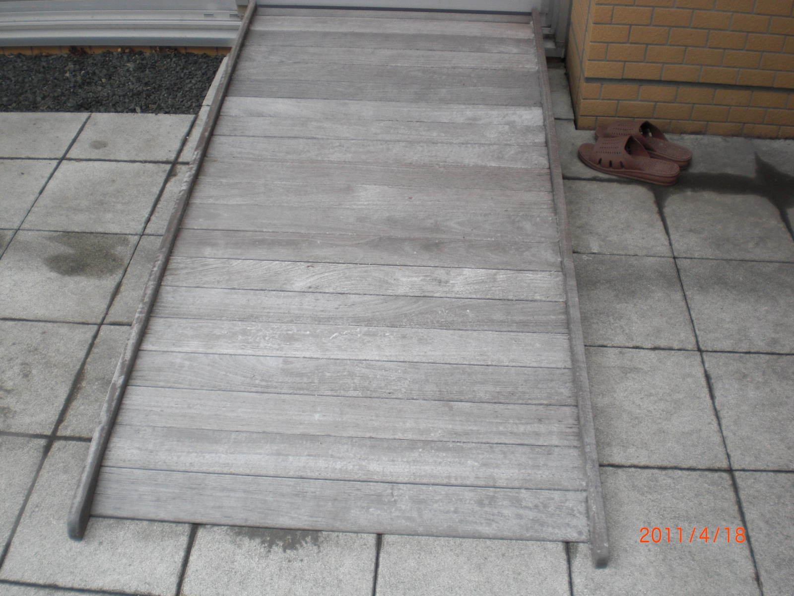 木で出来たスロープを塗装。地元の病院です。 車椅子用の段差解消スロープですね。メンテナンスをきちんとすると、長持ちします。