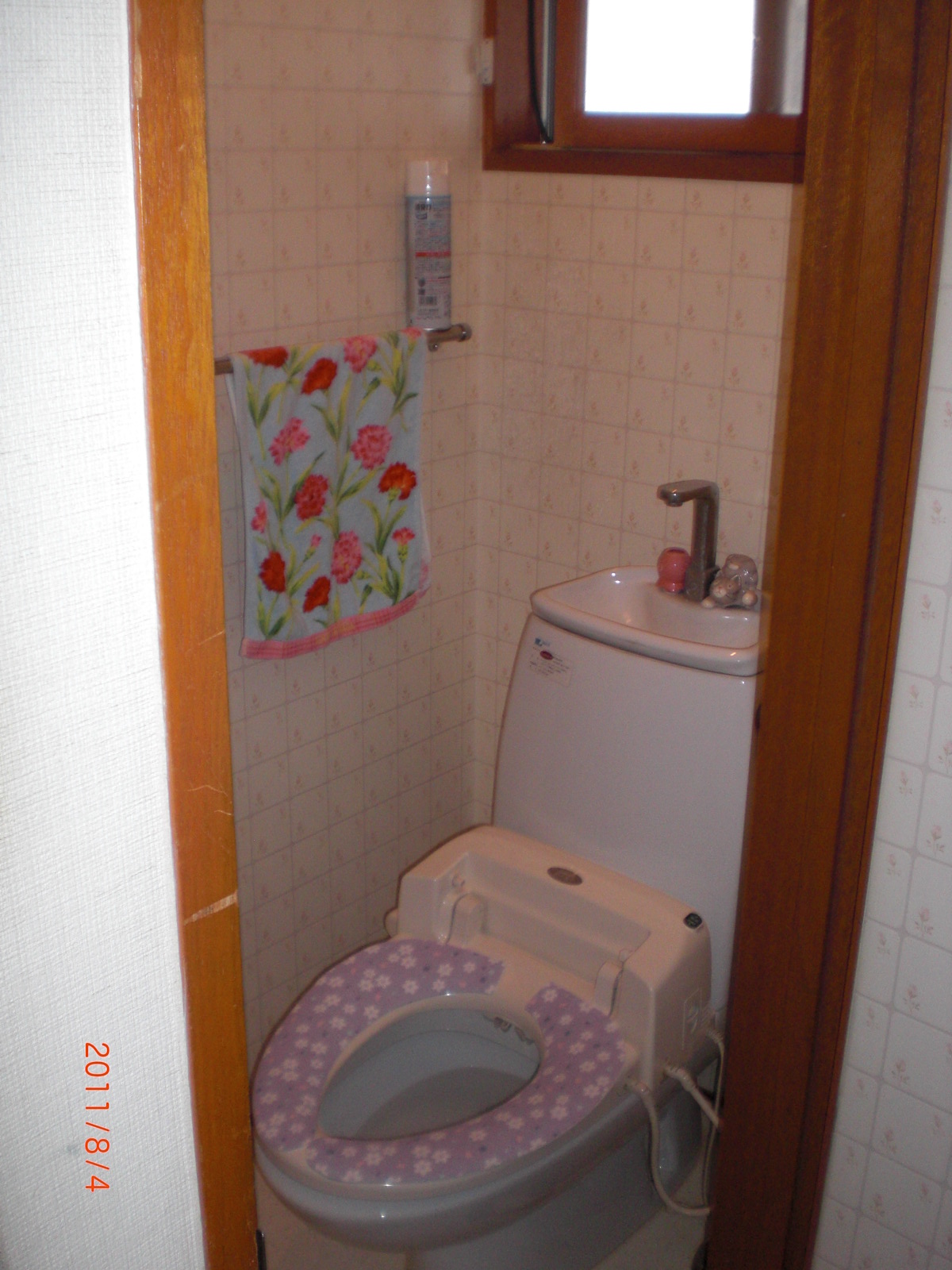 トイレ交換工事です。いつも使用するトイレ!新しいトイレに交換します。クロスも張り替えて綺麗になりましたね。いつも使用するところです。