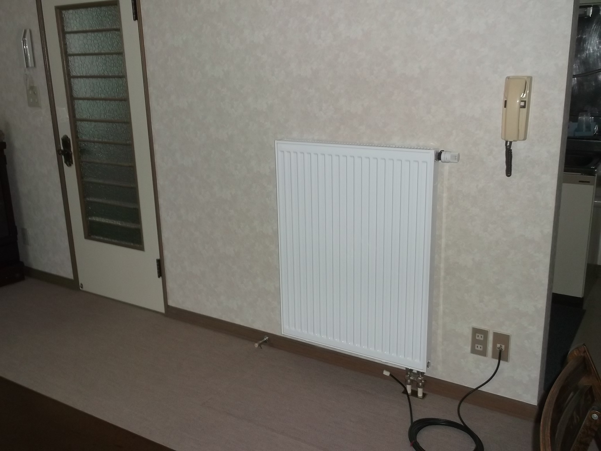 暖房パネルの増設。今まではFFストーブを設置し使用していた部屋に、セントラルヒーティングのパネルを増設しました。