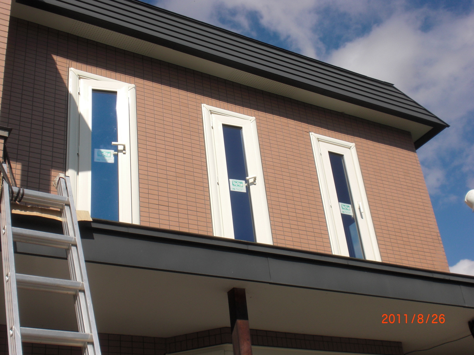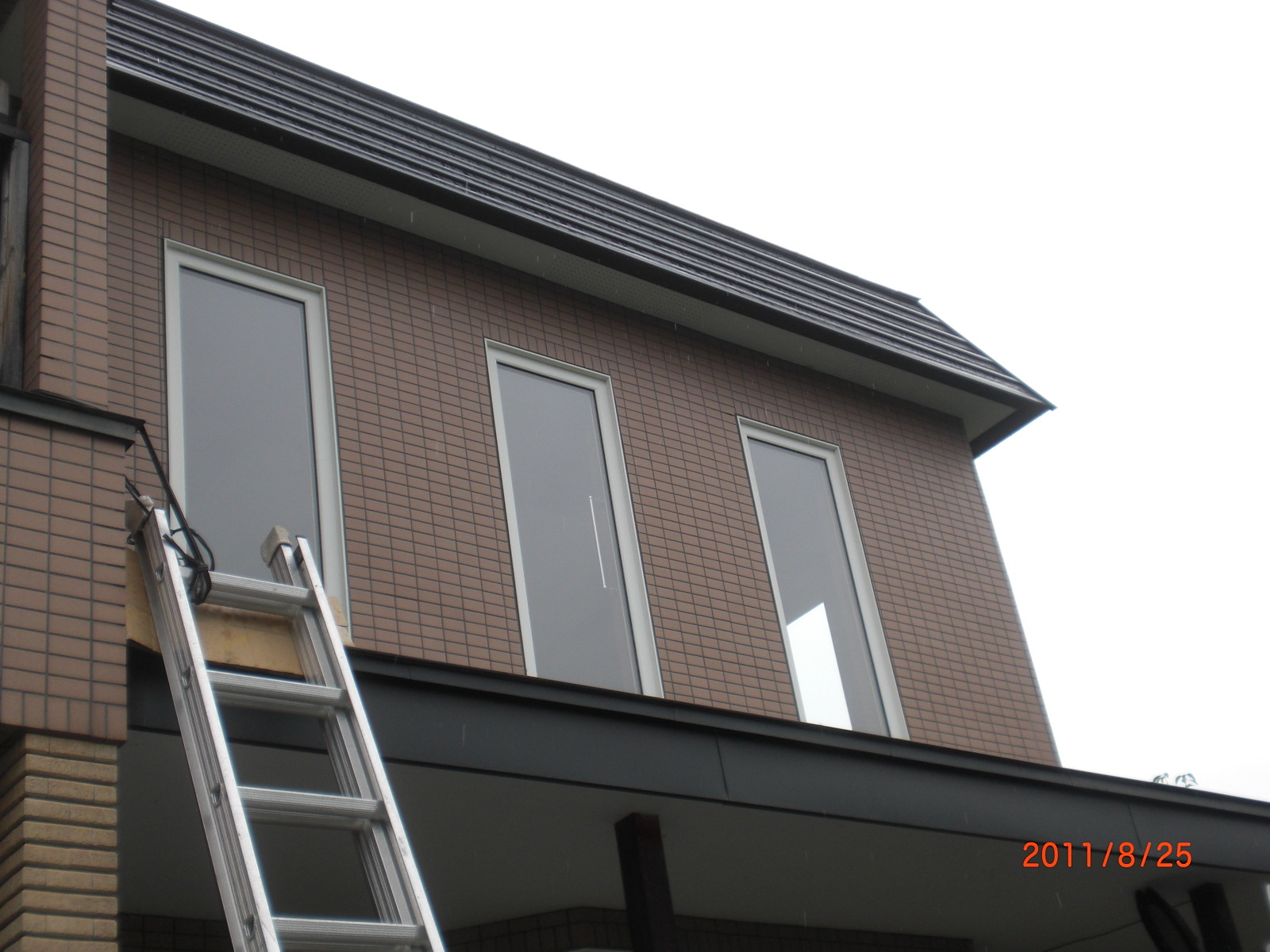 サッシ カバー工法。吹き抜けのところのサッシ3枚を空けることの出来るサッシに交換しました。どうですか?これで内部からの窓清掃なんかも出来ます。