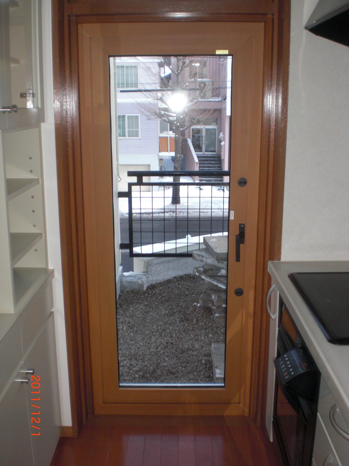 カバー工法です。古い木製ドア。それにカバー工法で新品同様に。どうですか?玄関ドア 勝手口ドアなどお考えの方、ご相談ください。