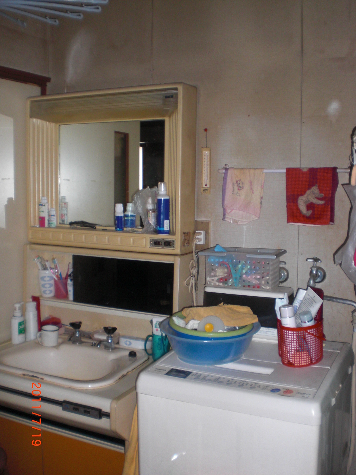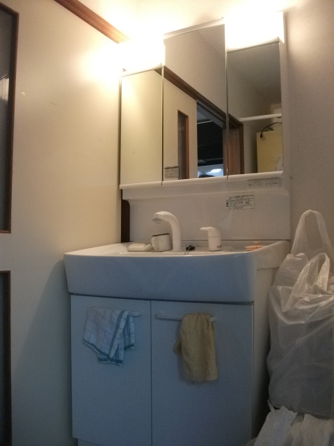 洗面化粧台交換工事。洗面化粧台・・・・・!毎日使うところですよね。どうですか?綺麗になりましたね。3面鏡は便利です。