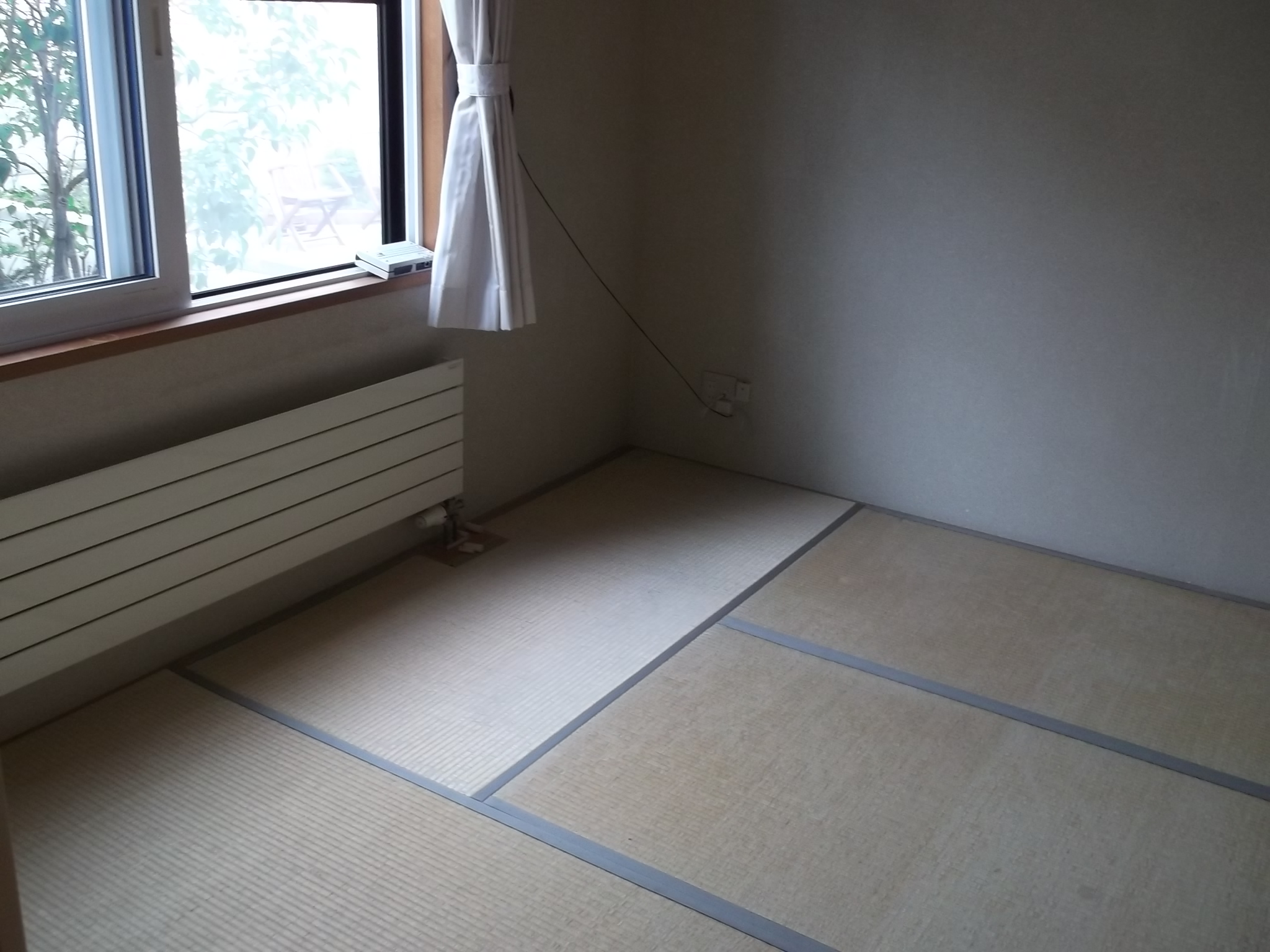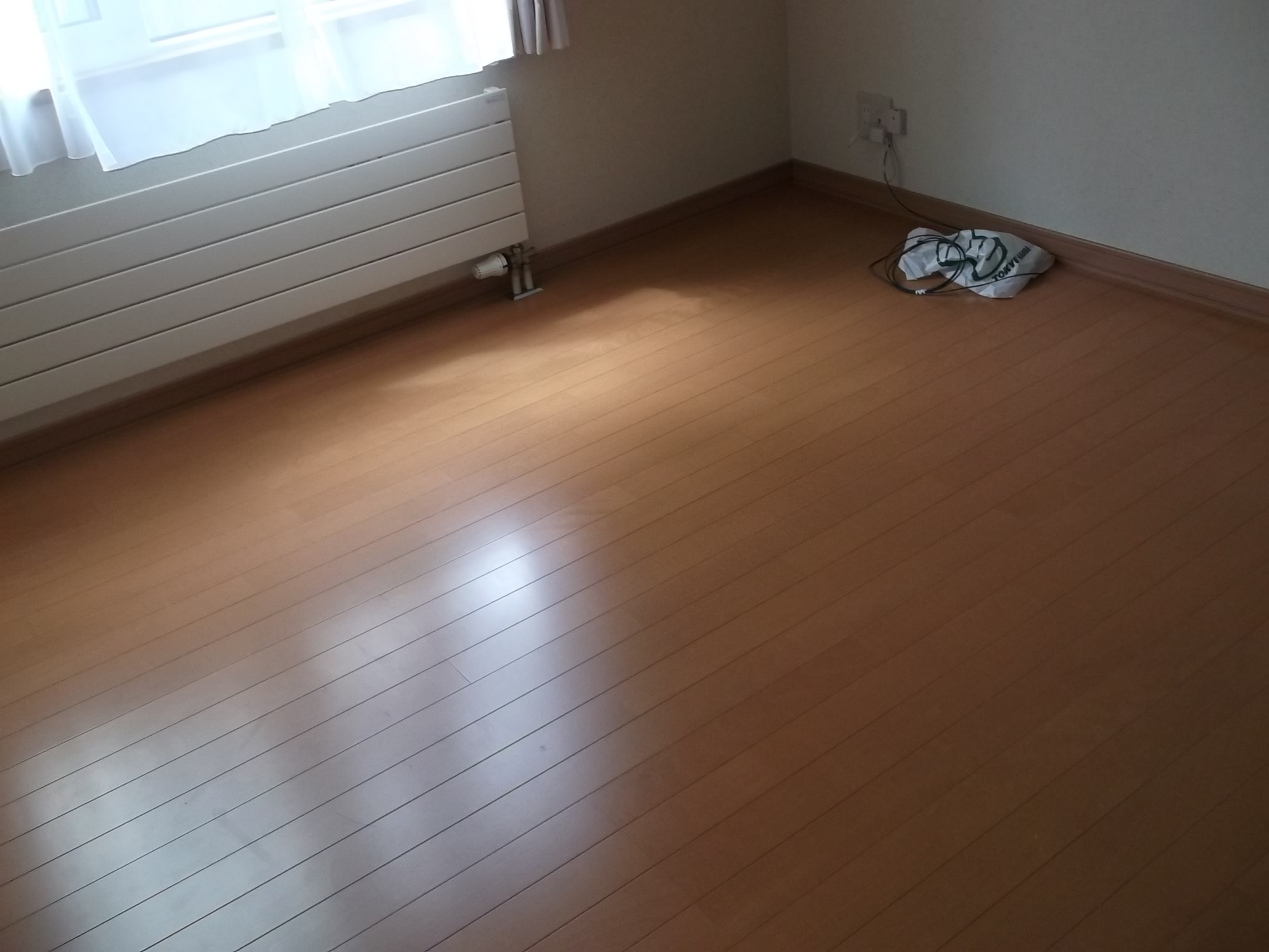 床工事です。和室。畳をフローリングに変更しました。どうですか?いいですよね。