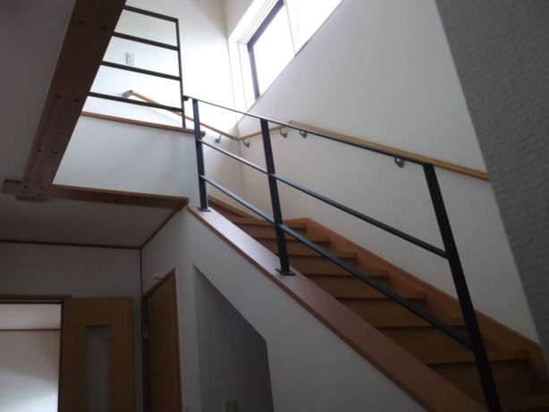 室内手摺改修工事。既存の手摺壁を撤去し、空間を広く見せ、しかもお洒落に。どうですか?広々空間!とってもいいと思います。