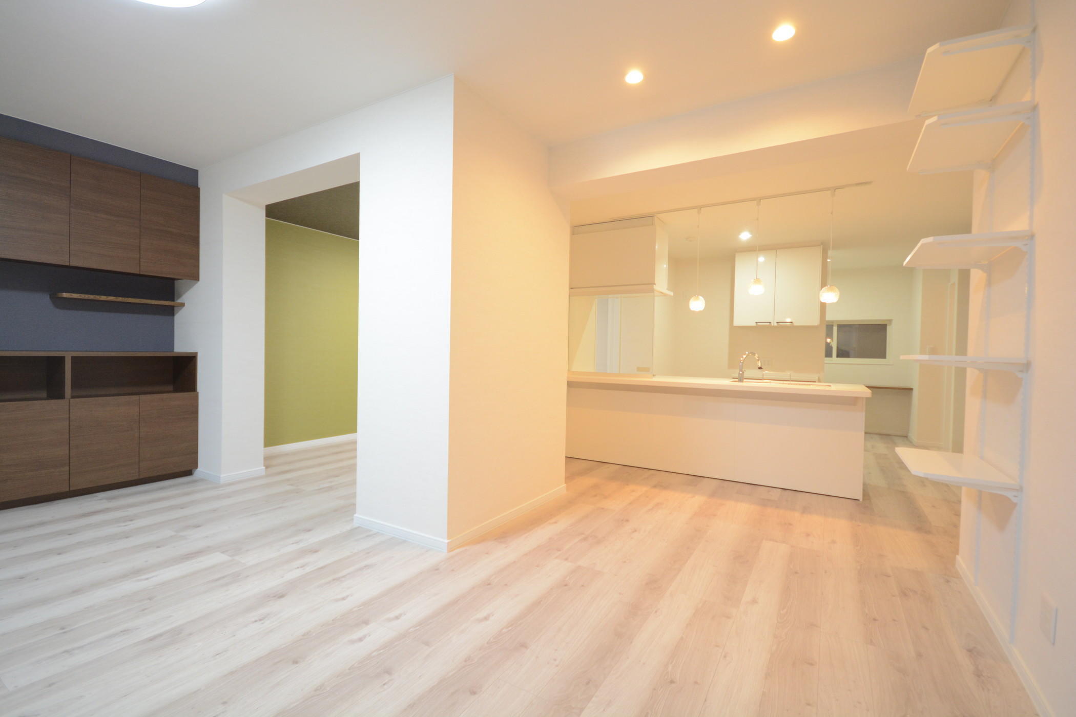 既存住宅は、このスペースにはリビングと和室があり、壁で仕切られていました。ブロック壁があるため取り除くことが不可能な個所があるため、出来る限りの開放感を実現させました。