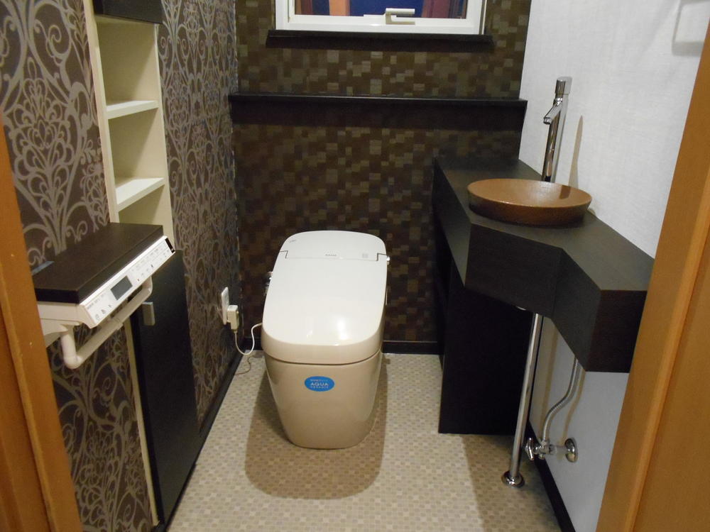 しました。造作手洗いを別に設け、トイレ用の掃除道具やストック用品は造作した収納に