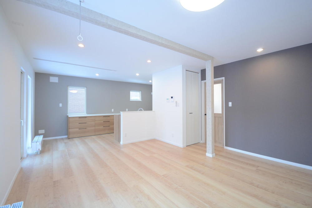 キッチンの位置を背面に移動し対面にすることで、コミュニケーションがとれて