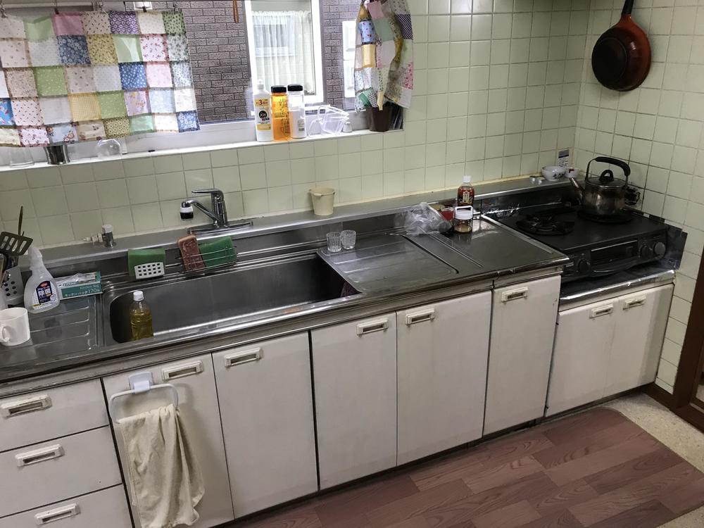 台所で家事仕事をするときは、壁付けのキッチンなので