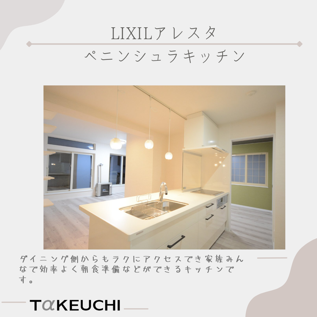 ダイニング側からもラクにアクセスでき家族みんなで効率よく朝食準備などができるキッチンです。
