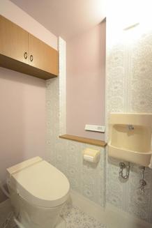 マンションのトイレリフォーム ピンク系壁紙で素敵に変身♪