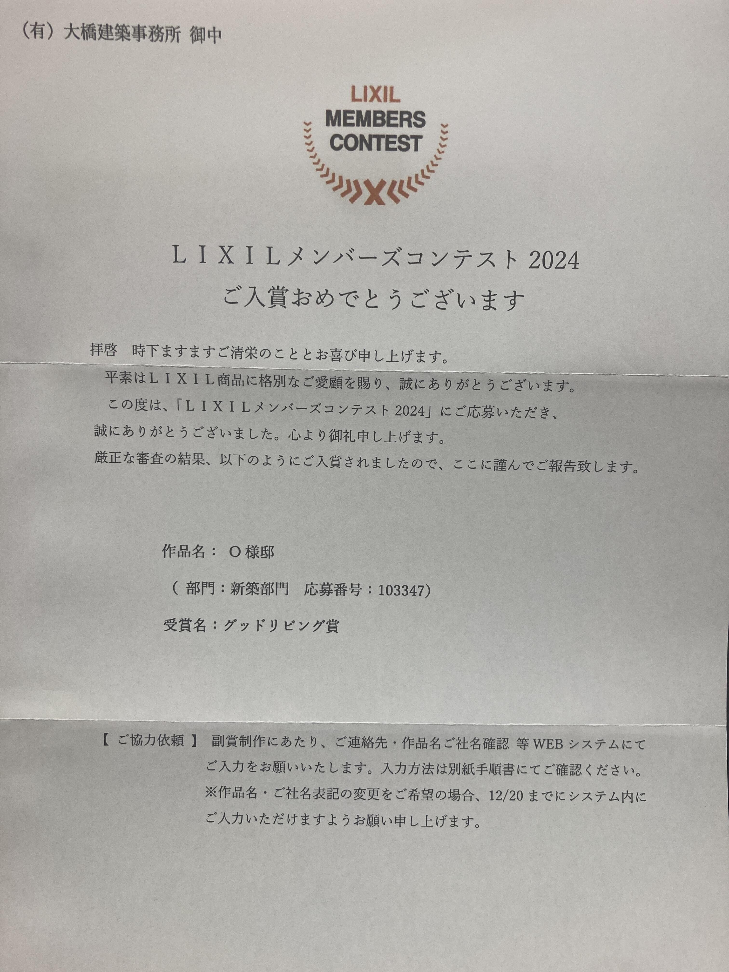 先ほど郵便屋さんが『LIXILメンバーコンテスト2024』の結果を配達してくれました。
