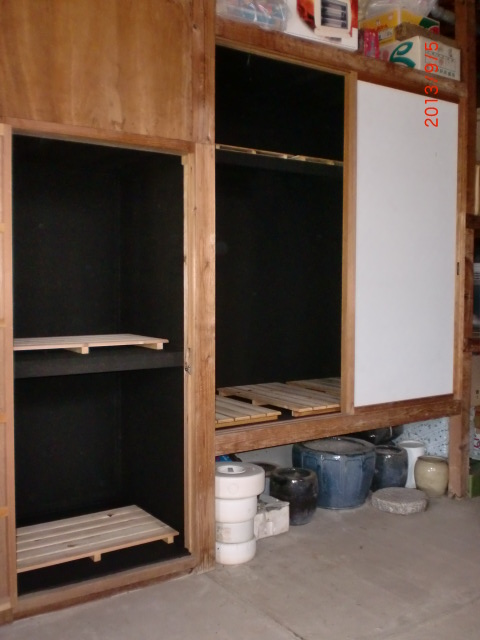 1階車庫の物置にはニオイシッケトールを塗布しました。