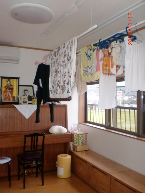 一番日の当たる窓辺に埋め込み物干し竿を取り付けました。
