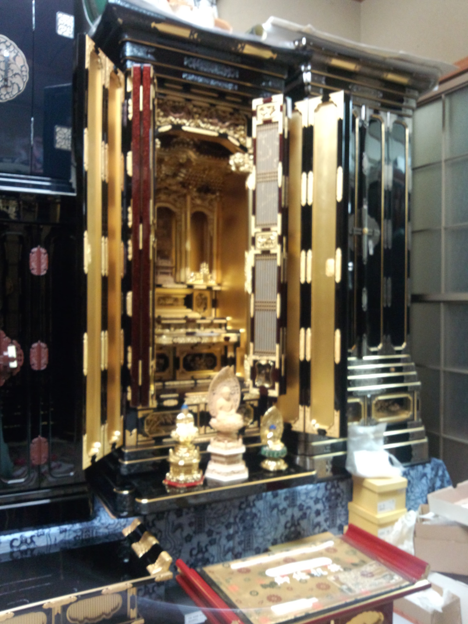 まずは、私のお客様「川勝仏壇」さんに一緒に伺いお仏壇を決めに伺いました。 宗派を伺い・・・お気に入りの物が決定しました。