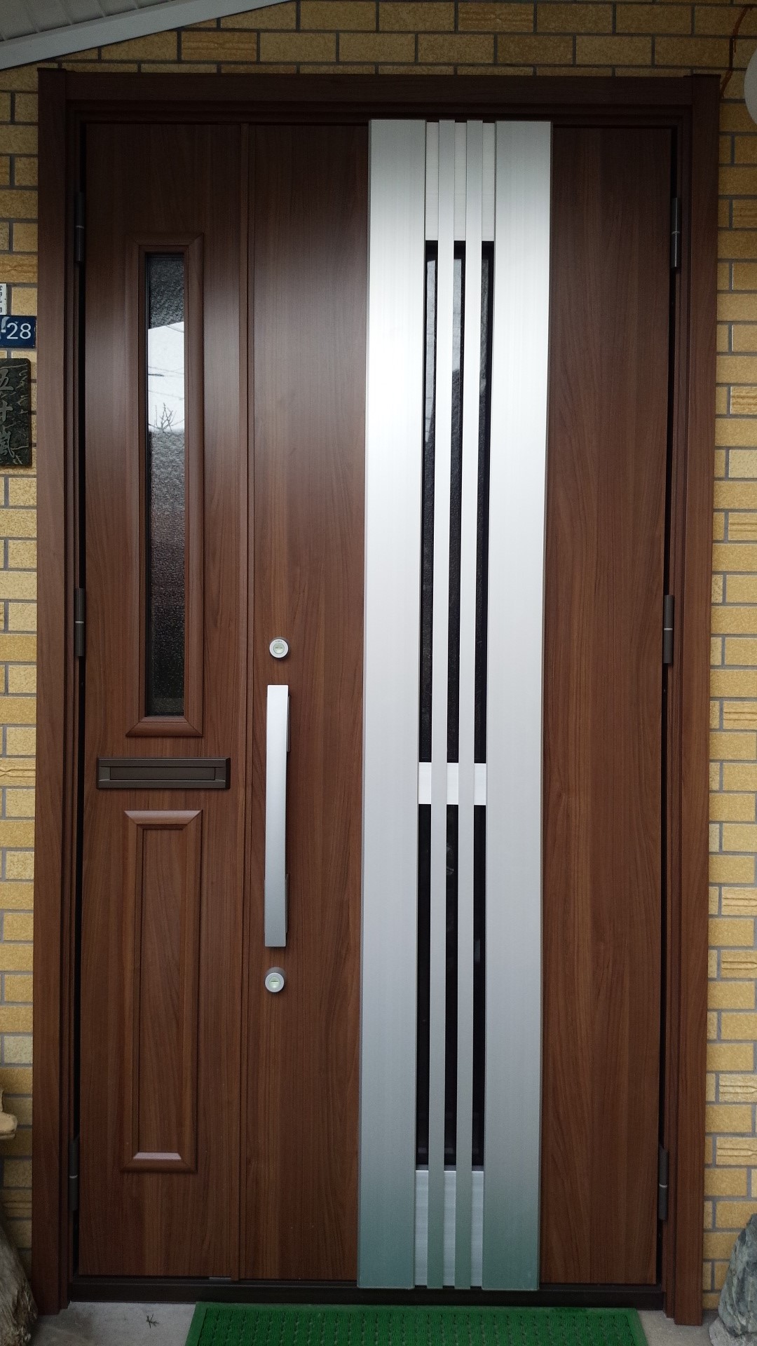いつも声を下さり感謝致します。 年月の経過で消耗してくる部分が建物には御座います。 玄関戸の蝶番や把手もその一つで・・・歪みなどで開閉しにくくなります。 今回は施工日数1日の「ワンデーリフォーム」の出来る「リシェント」を採用し短時間で工事完了致しました。 落ち着いた色合いの素敵な玄関戸でまた家に恋出来ちゃいますね♡。