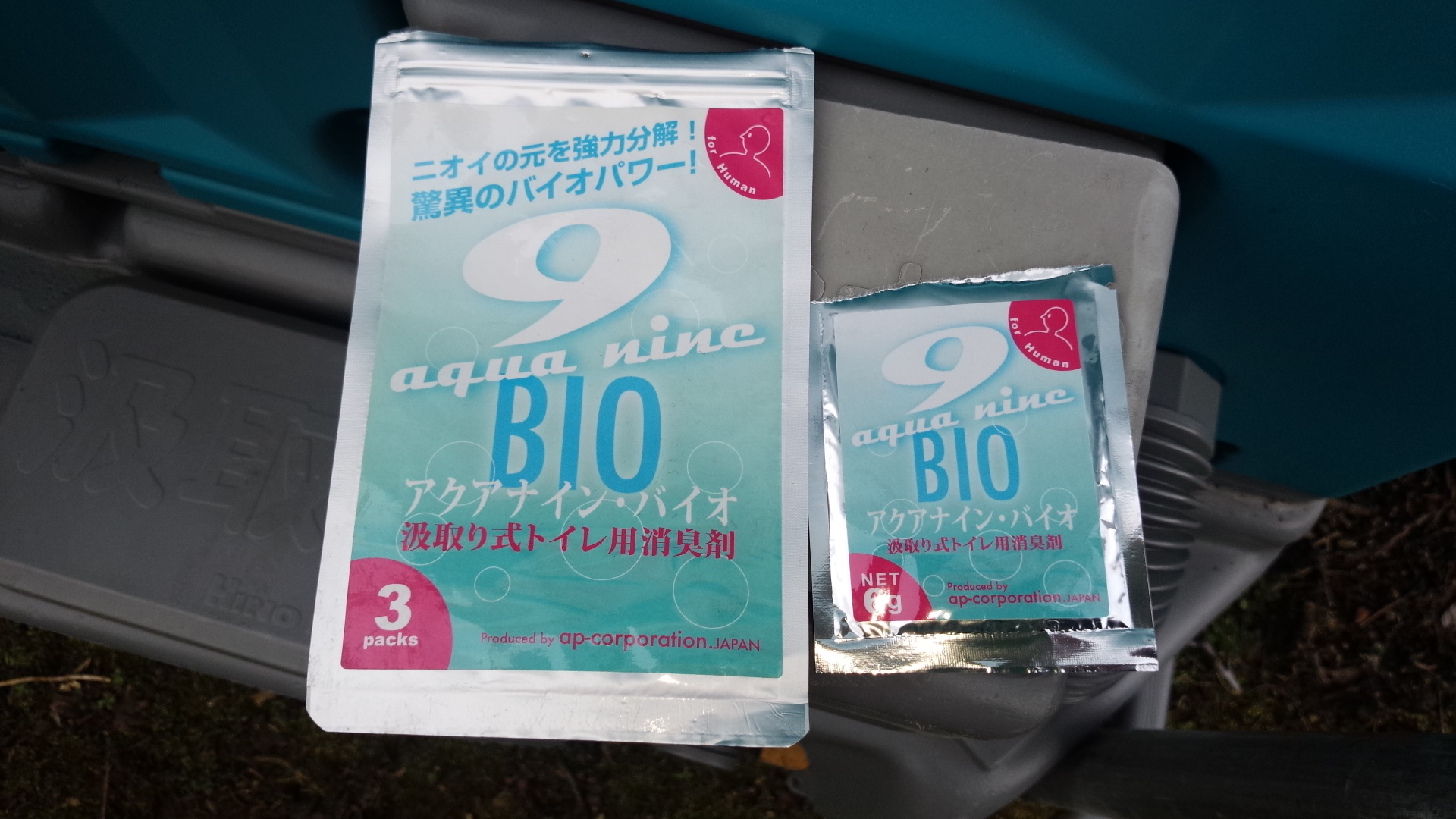 近隣の皆様に迷惑をお掛けしないように、弊社では仮設トイレに「アクアナイン・バイオ」を使用したりします。 ニオイの元を強力分解!驚異のバイオパワーです!。